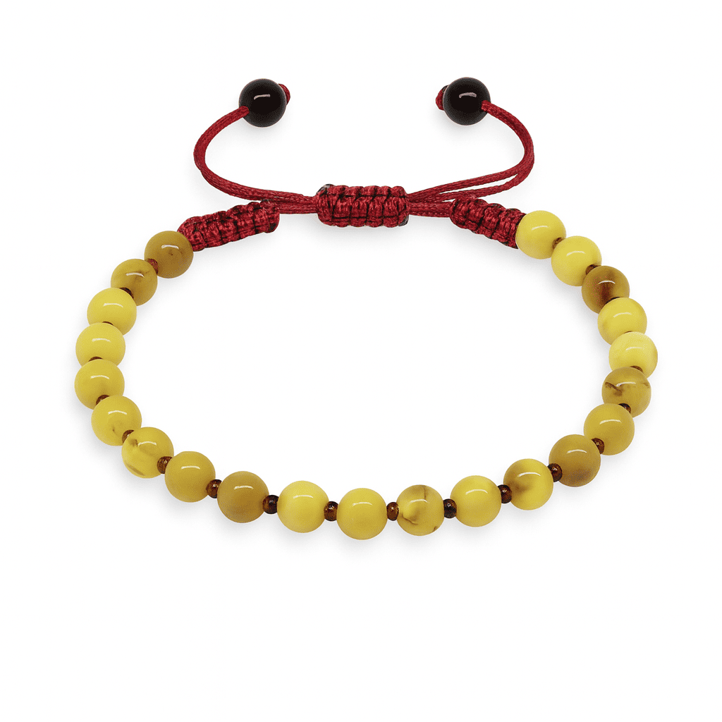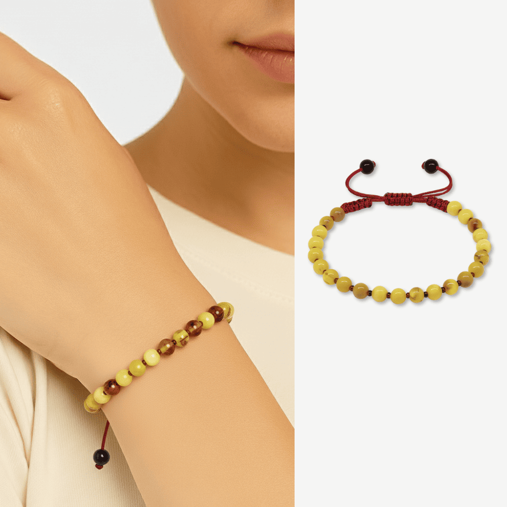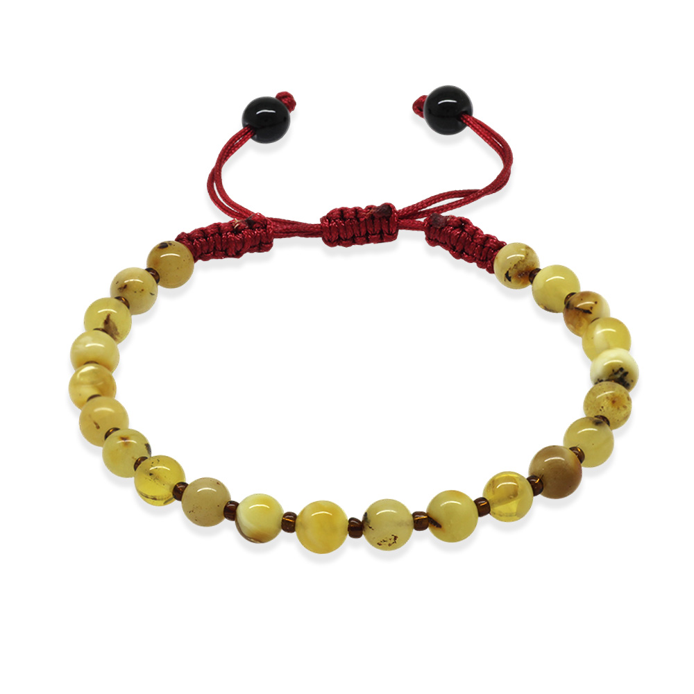 Mkarome Örgülü Küre Kesim Sarı Beyaz Renk Doğal Damla Kehribar Kadın Bileklik