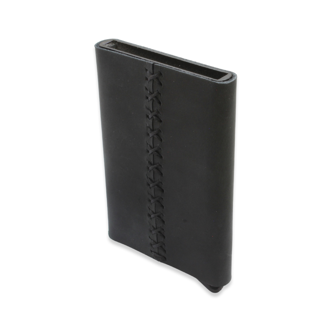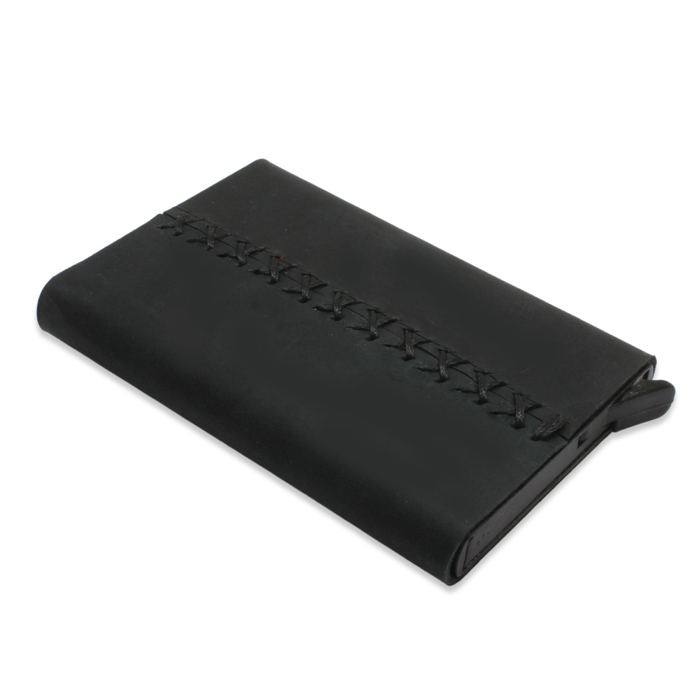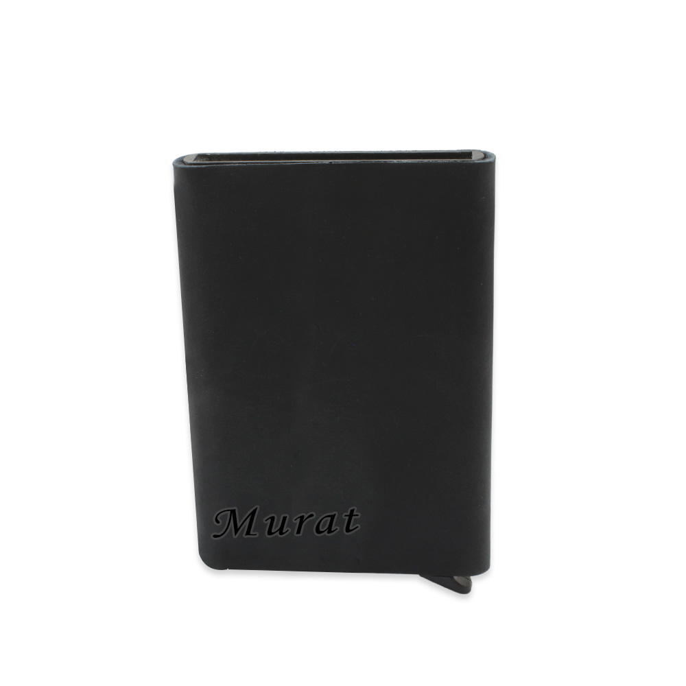 Tamamı El Dikişi Siyah Hakiki Deriden Mekanizmalı İsme Özel Yazılı Kartlık Cüzdan M2