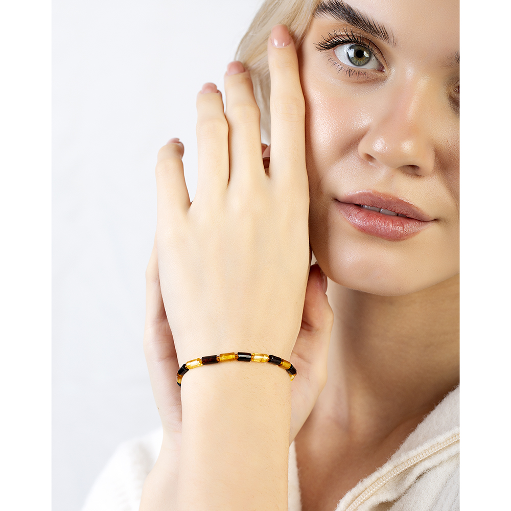Çok Renkli Doğal Damla Kehribar Kadın Bileklik