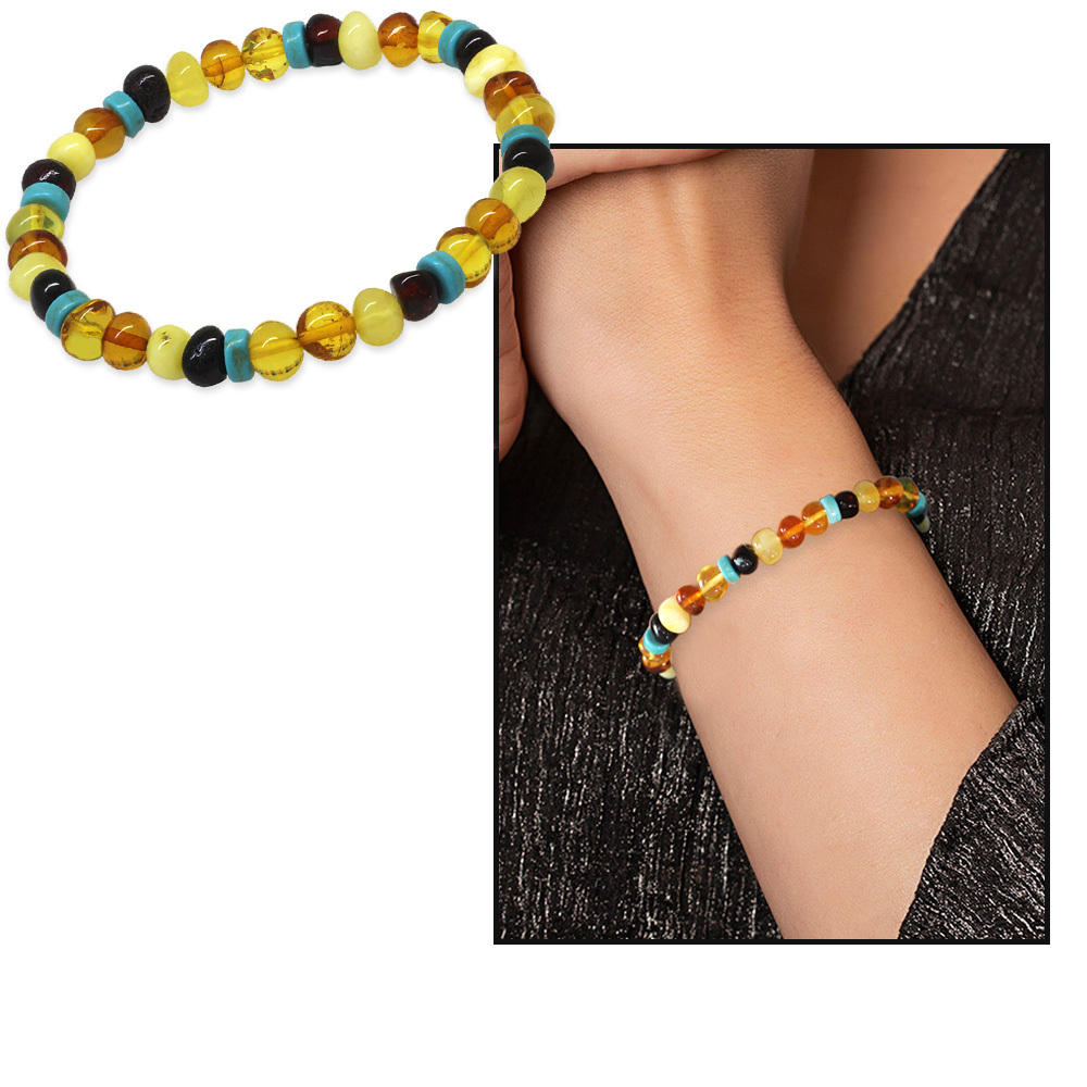 Multicolor Renk Firuze Doğaltaş Süslemeli Natural Form Doğal Damla Kehribar Kadın Bileklik
