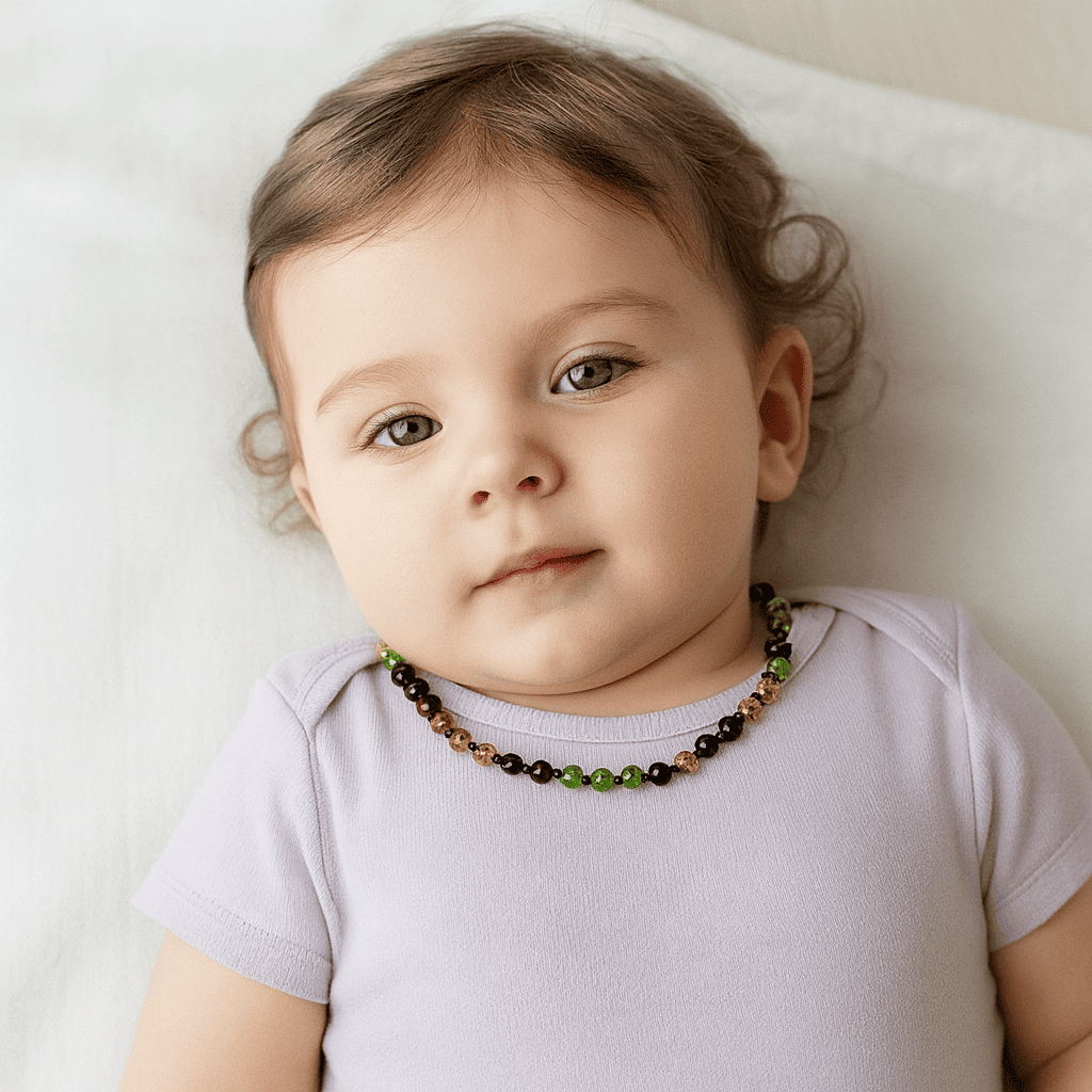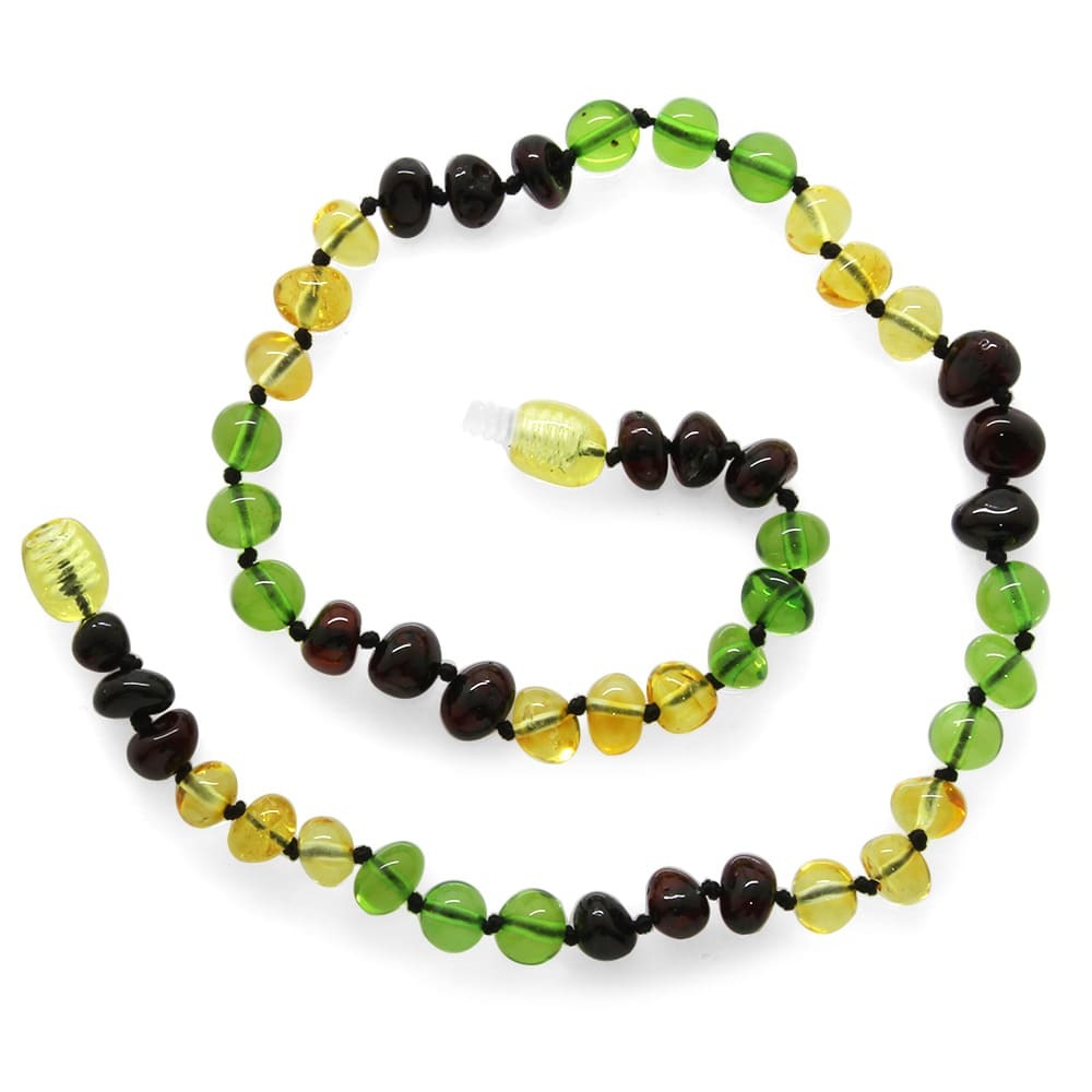 Şeffaf Yeşil Kırmızı Renkli Şık Kutulu Özel Seri Naturel Damla Kehribar Taşlı Bebek Diş Kolyesi - 1