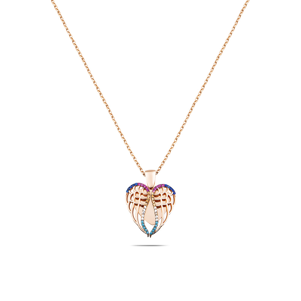 Çok Renkli Zirkon Taşlı Melek Kanadı Tasarım Kişiye Özel İsim Yazılı 925 Ayar Gümüş Kadın Kolye