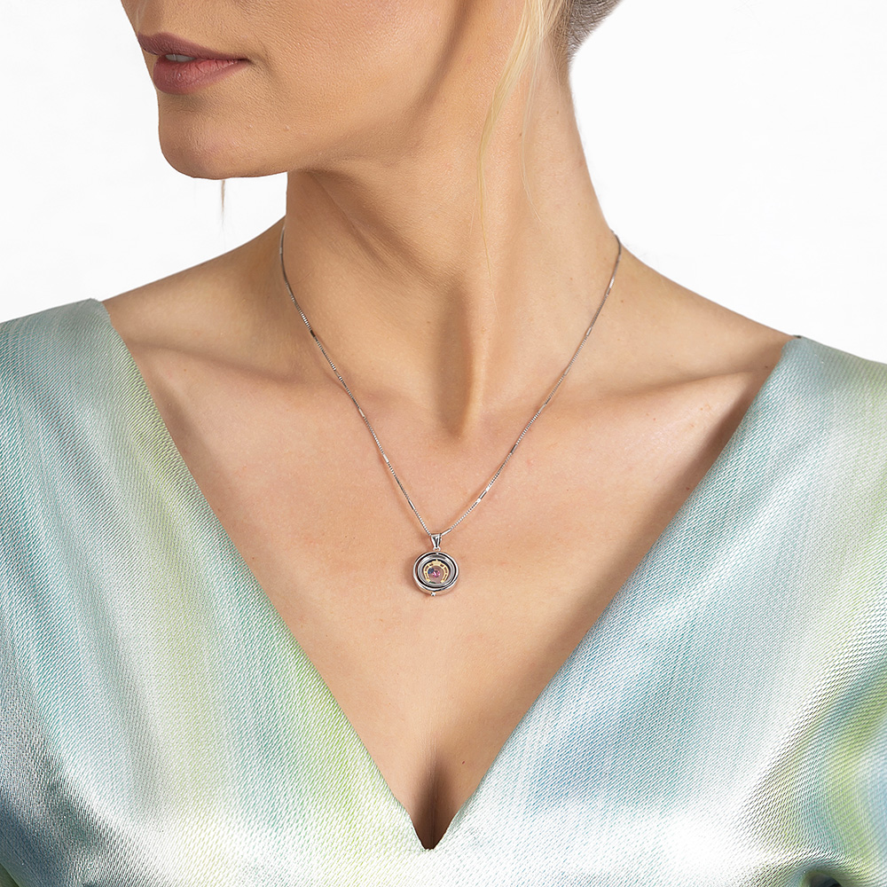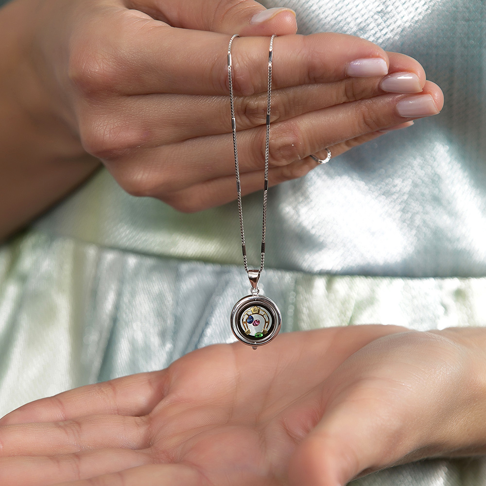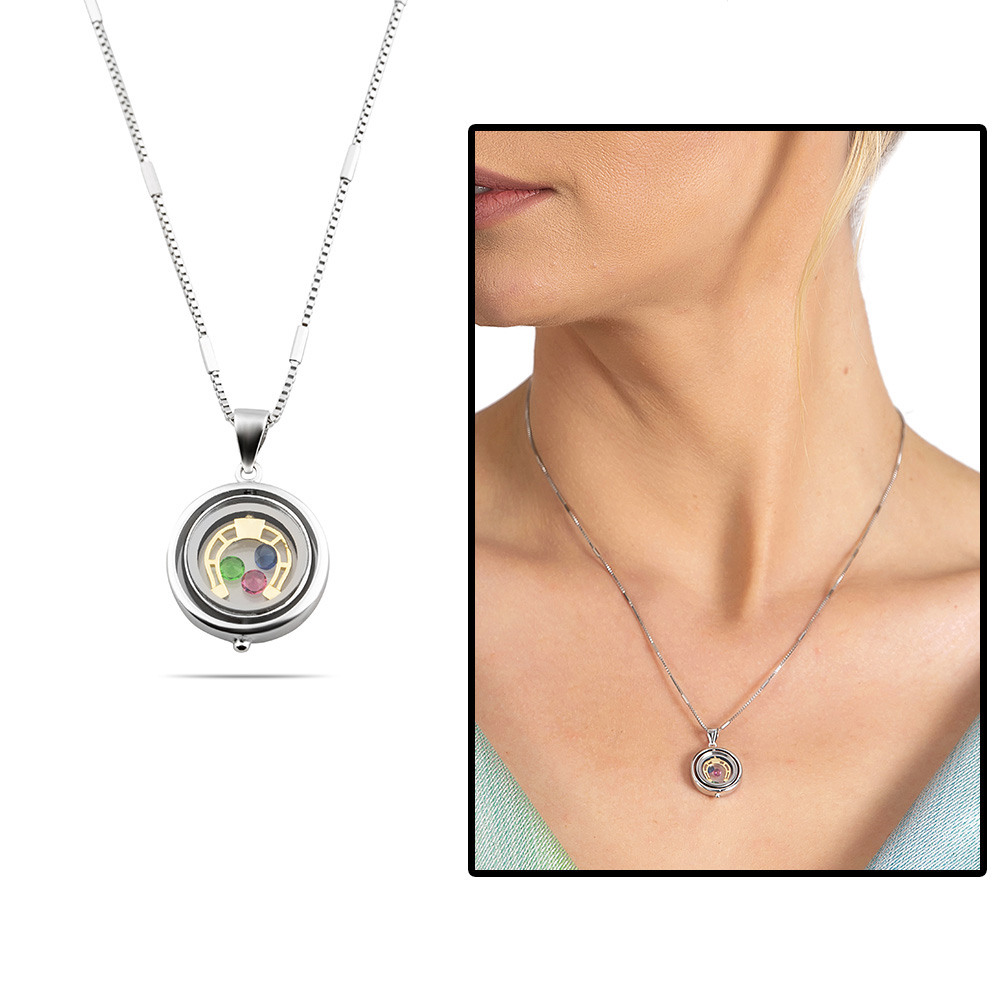 Çok Renkli Zirkon Taşlı Oval Tasarım At Nalı Detaylı 925 Ayar Gümüş Kadın Şans Kolyesi