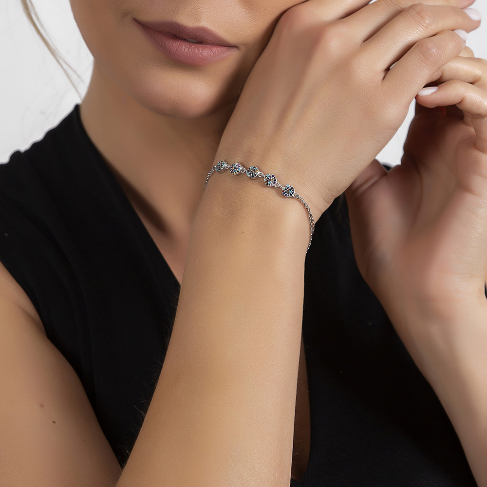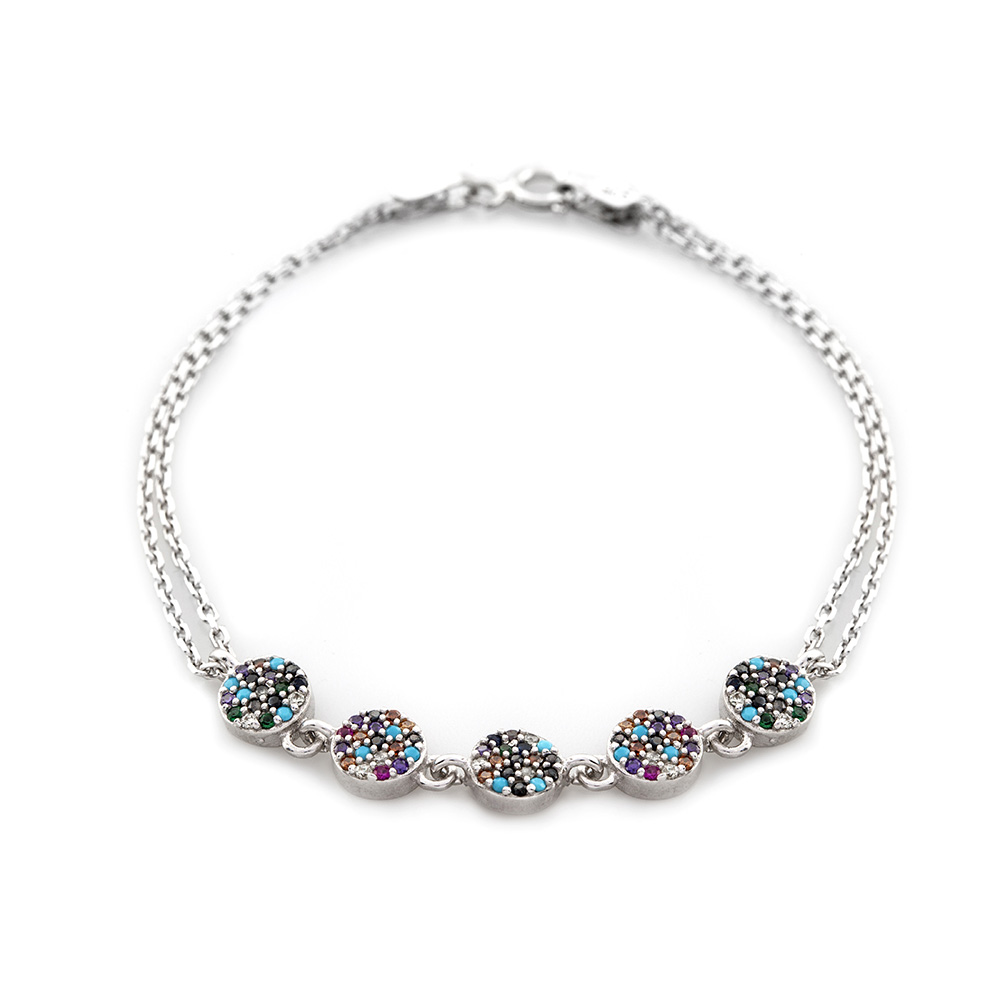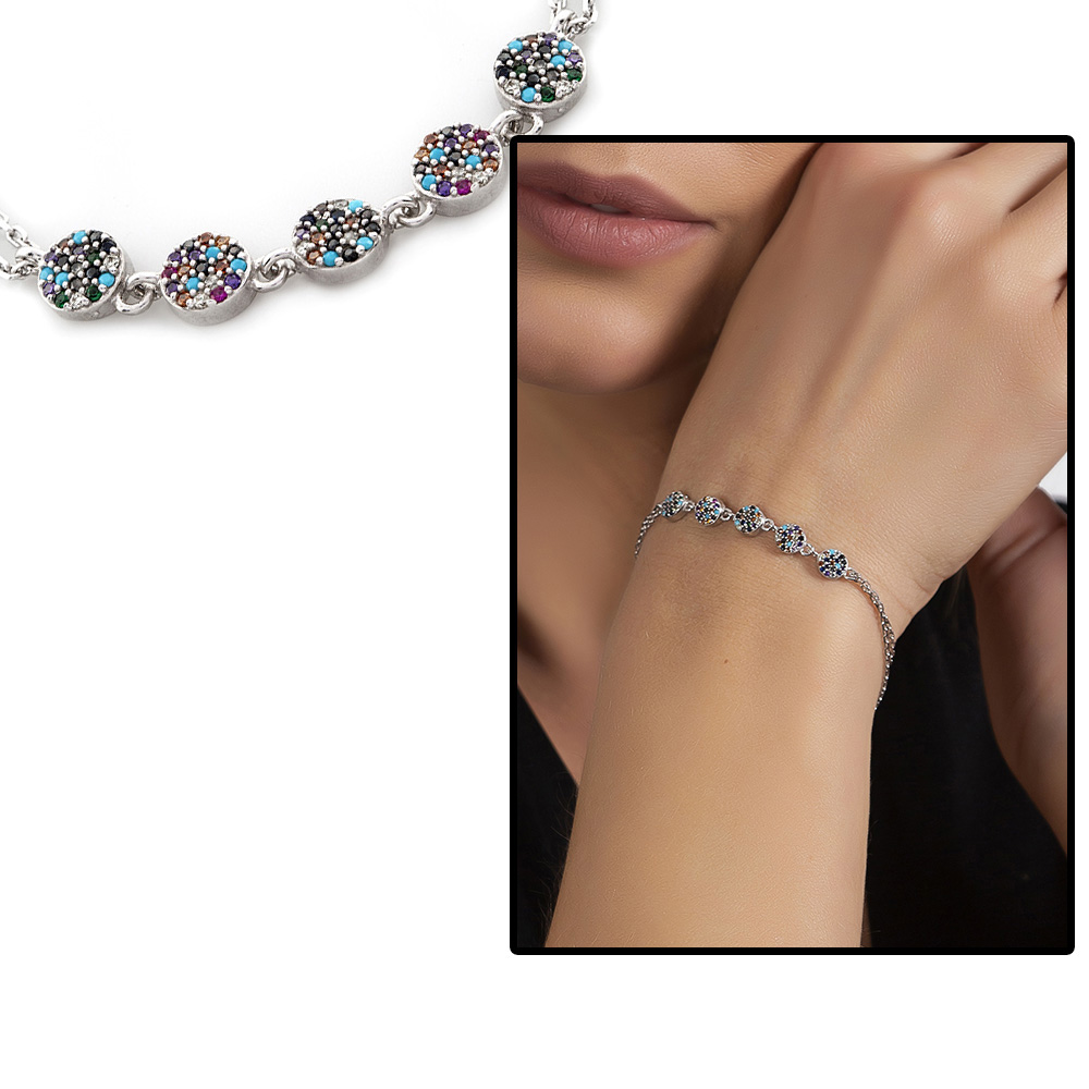 Çok Renkli Zirkon Taşlı Zarif Tasarım 925 Ayar Gümüş Su Yolu Kadın Bileklik