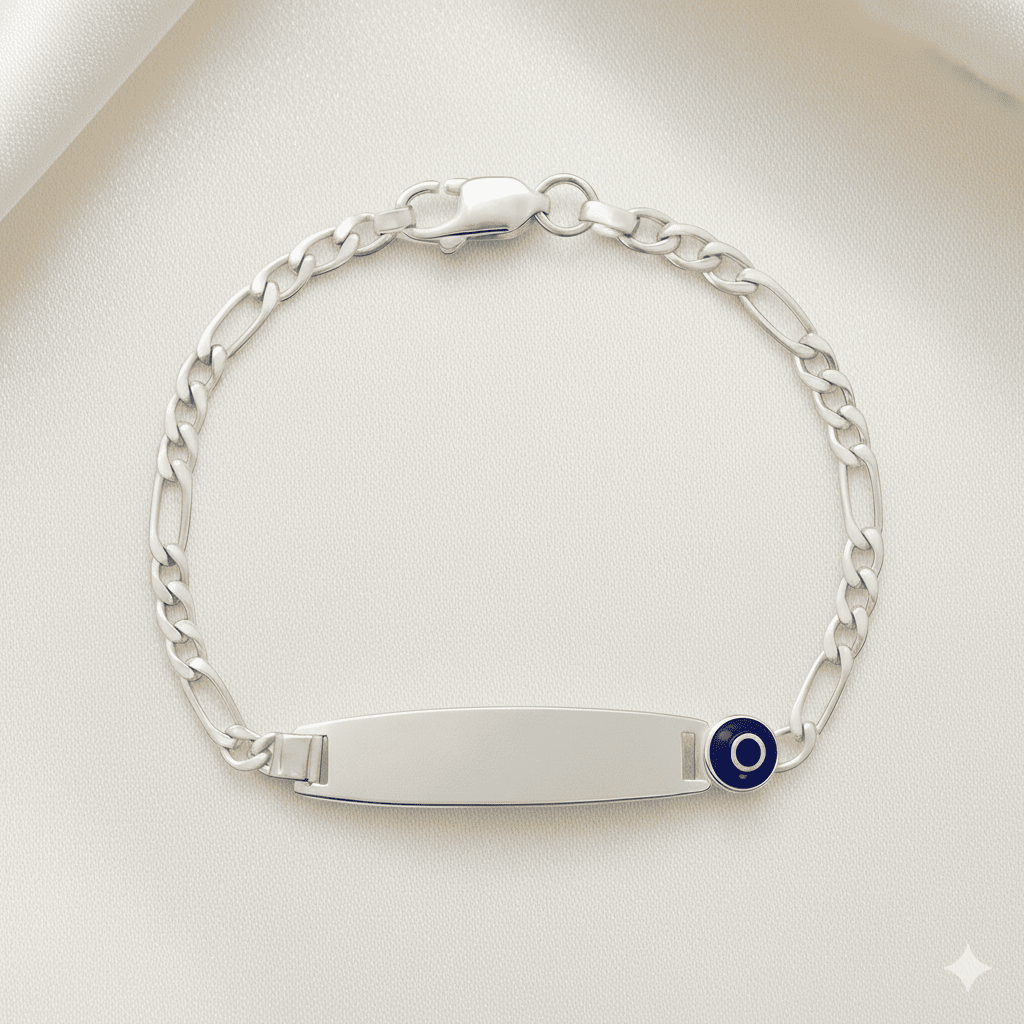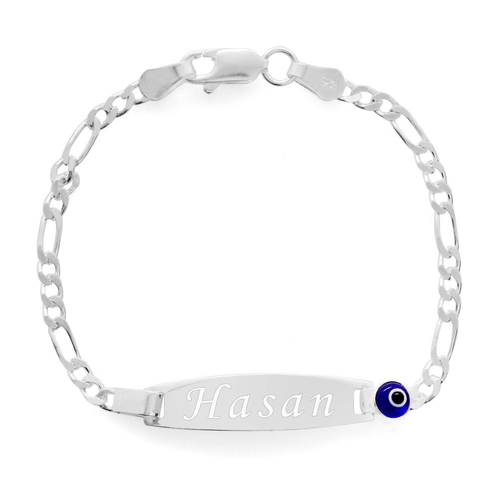 Nazar Bocuğu Detaylı 925 Ayar Gümüş Zincirli İsme Özel Yazılı Çocuk Bileklik