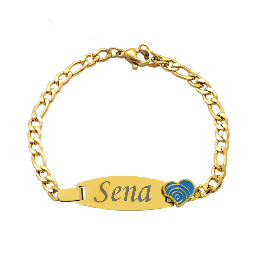 Turkuaz Papatya Detaylı Altın Renk İsme Özel Yazılı Çelik Kadın Bileklik