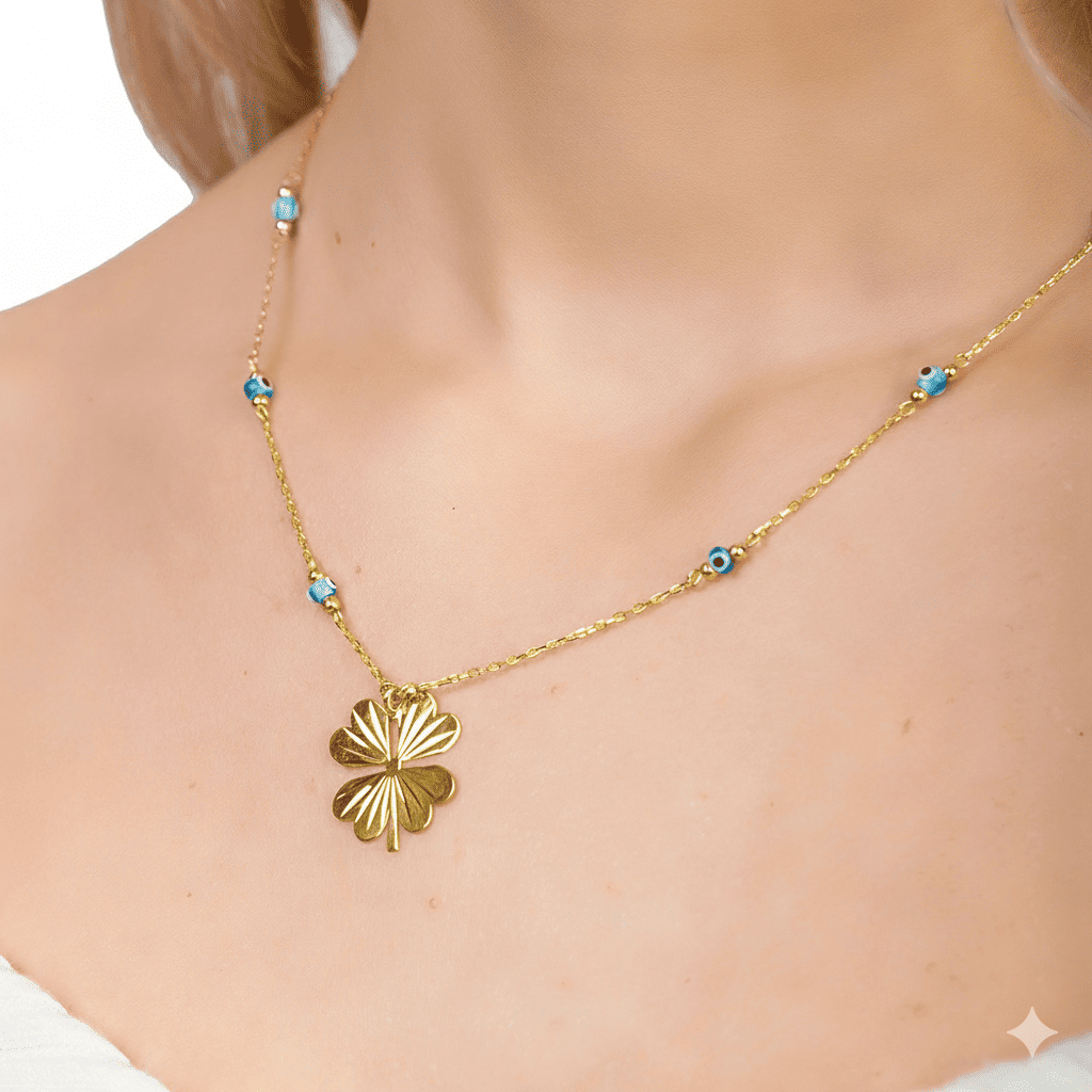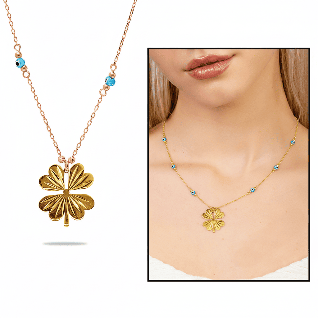 Nazar Boncuğu Detaylı Kır Çiçeği Tasarım Altın Renk 925 Ayar Gümüş Kolye