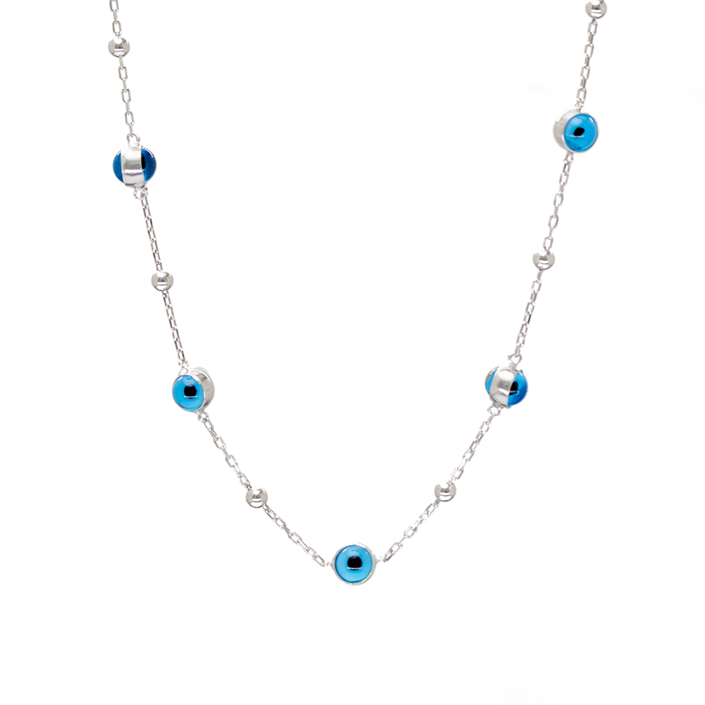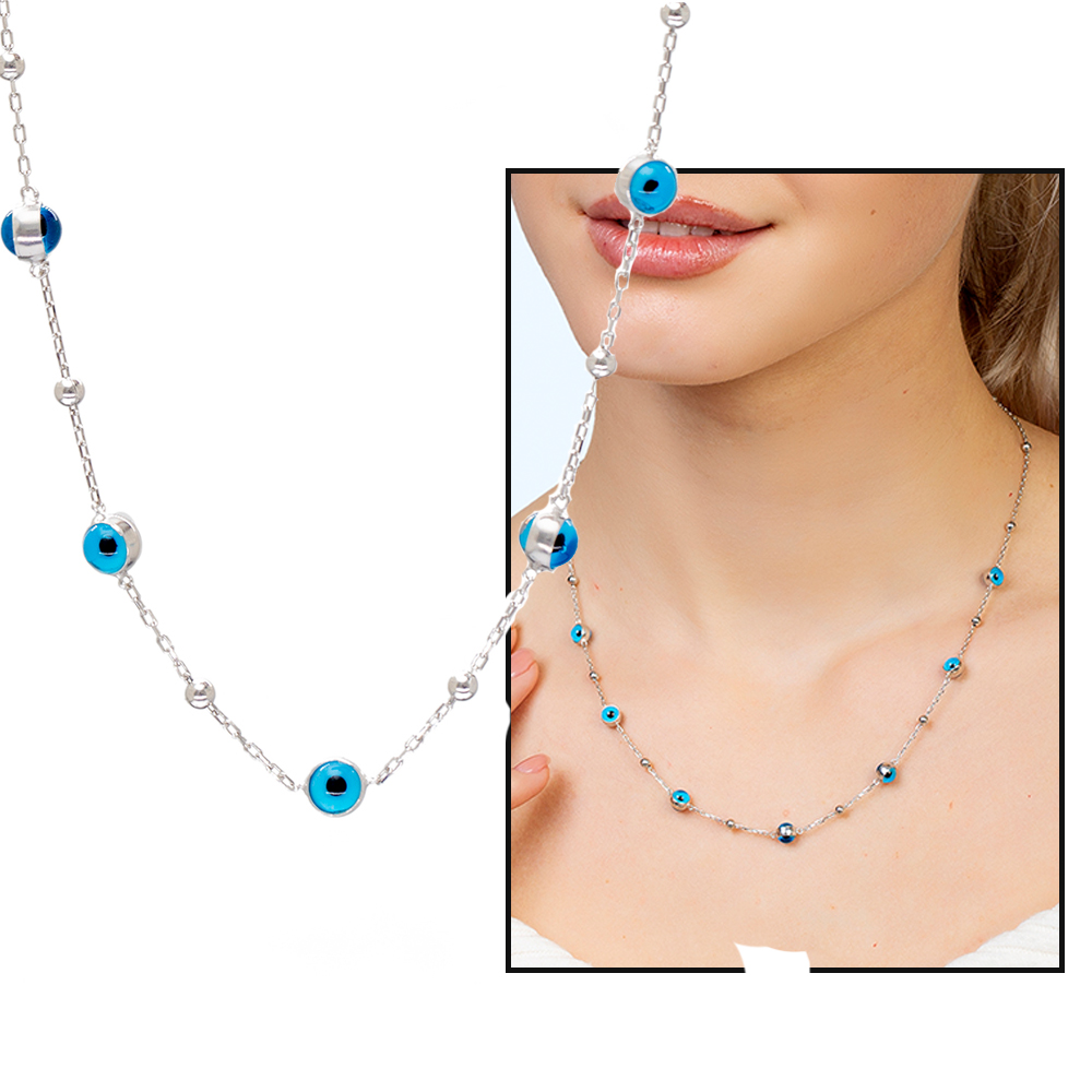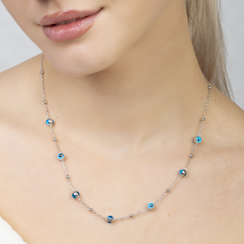 Nazar Boncuğu Detaylı Gümüş Renk 925 Ayar Gümüş Kadın Şans Kolyesi