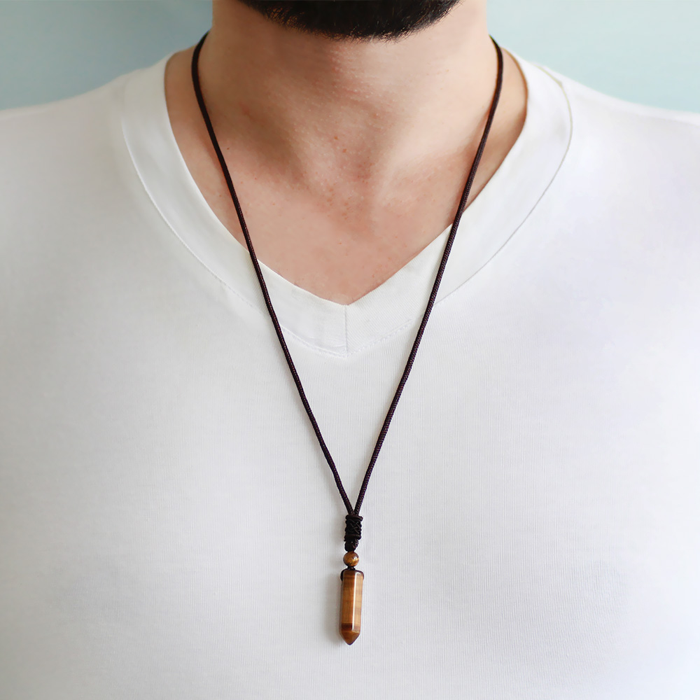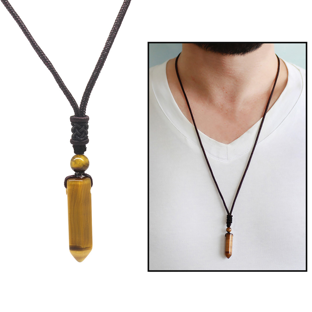 Obelisk Tasarım İp Zincirli Kaplan Gözü Doğaltaş Erkek Kolye