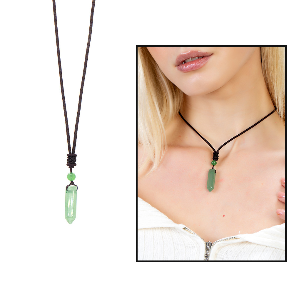 Obelisk Tasarım Zarif İp Zincirli Aventurin Doğaltaş Kadın Kolye