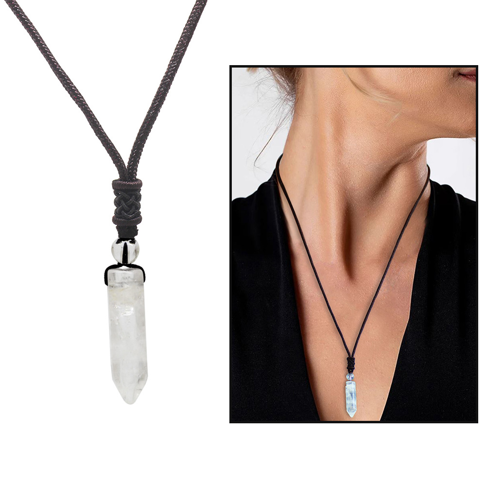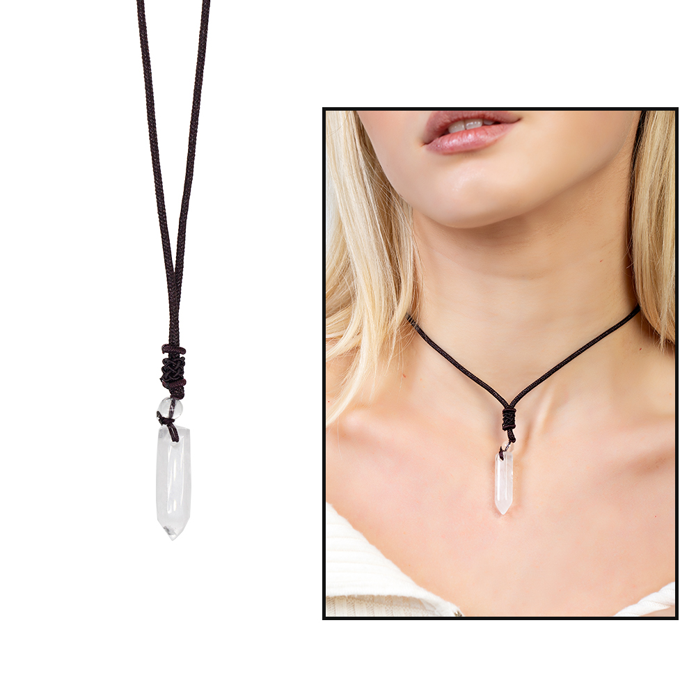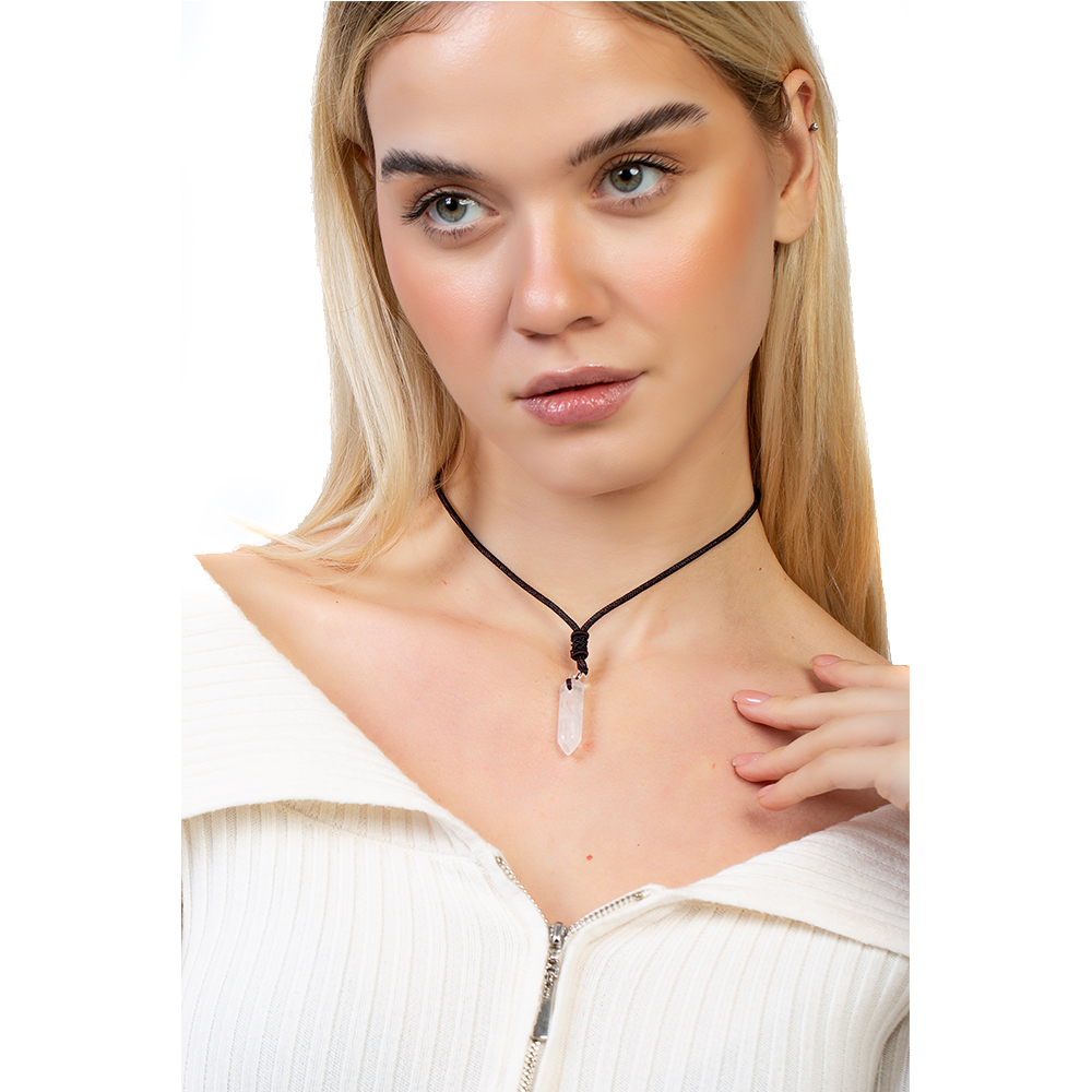 Obelisk Tasarım Zarif İp Zincirli Kristal Kuvars Doğaltaş Kadın Kolye