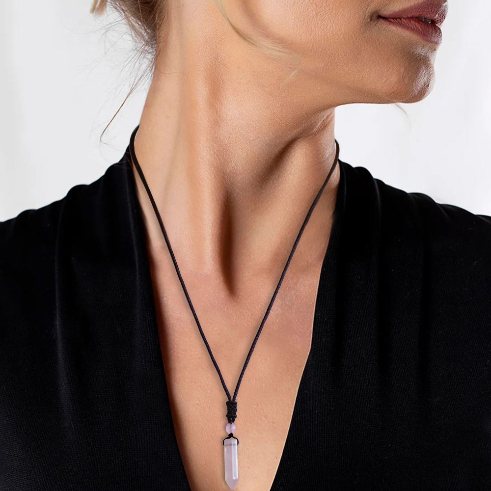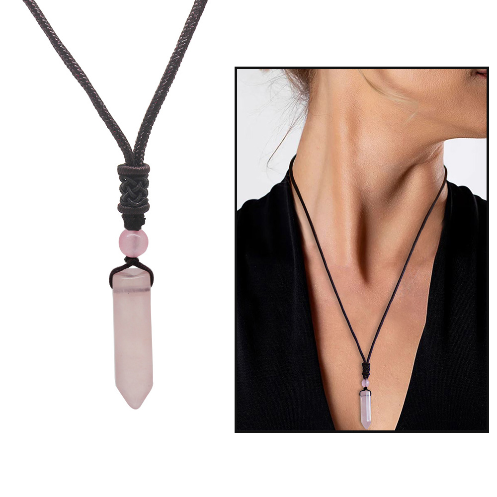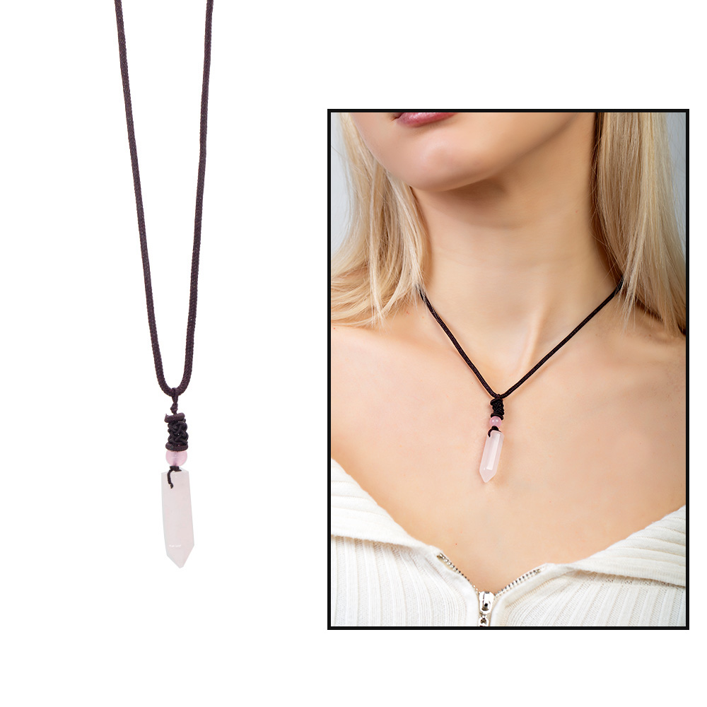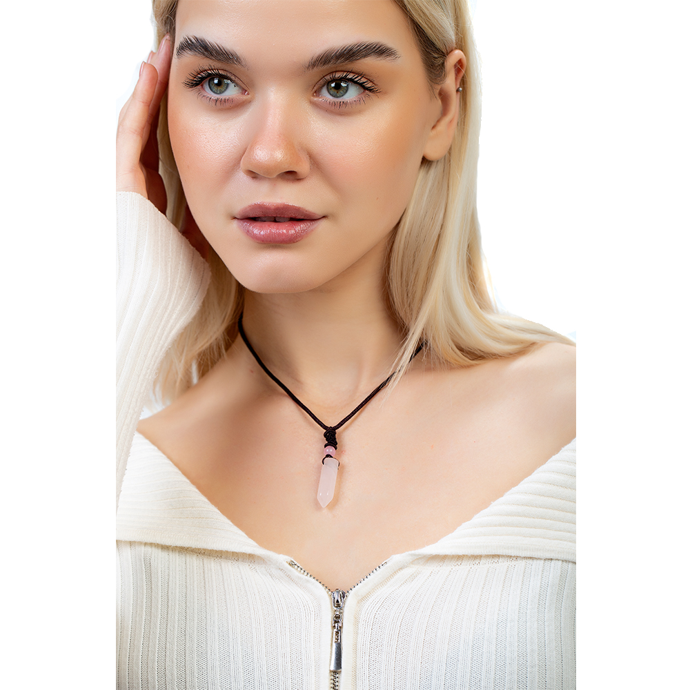 Obelisk Tasarım Zarif İp Zincirli Pembe Kuvars Doğaltaş Kadın Kolye