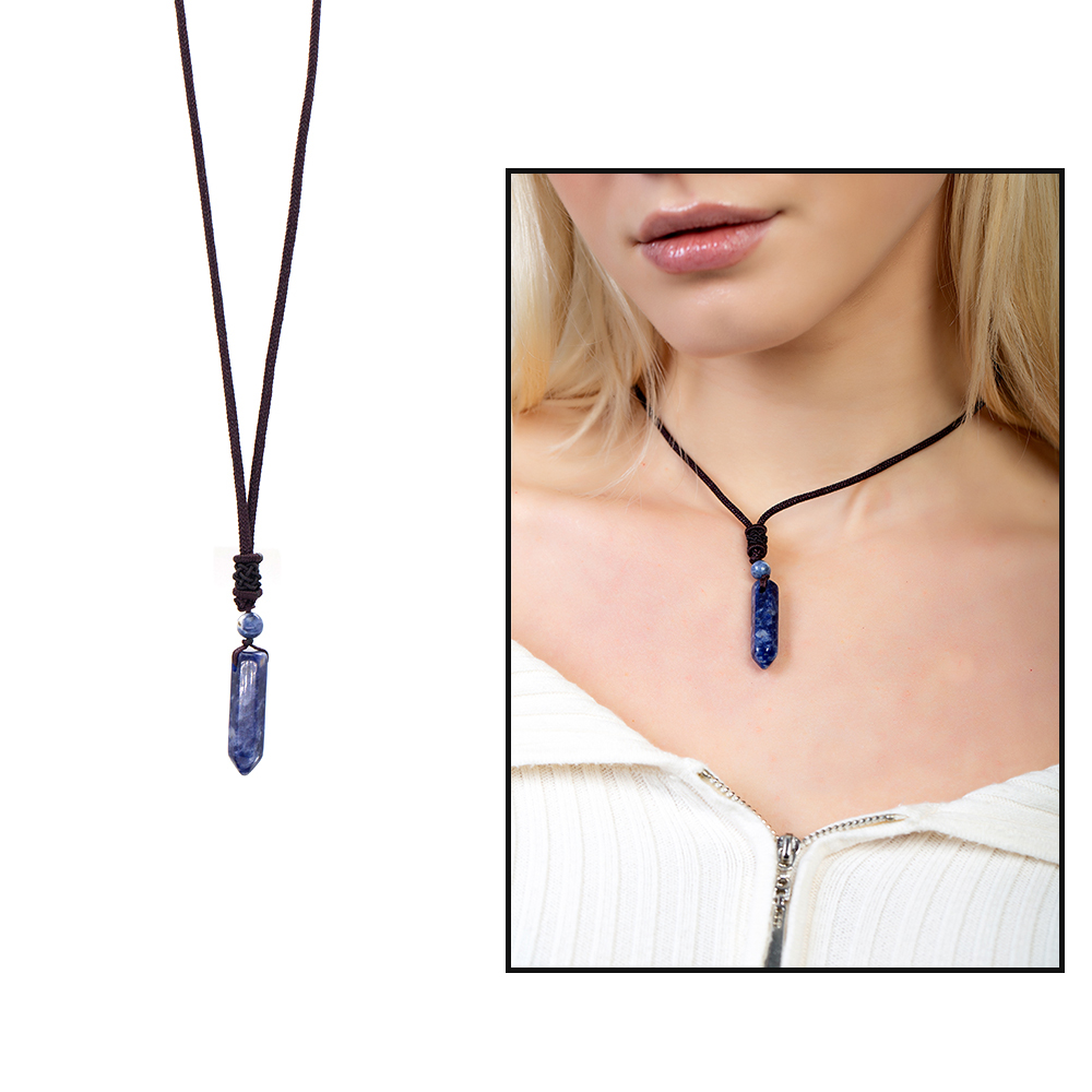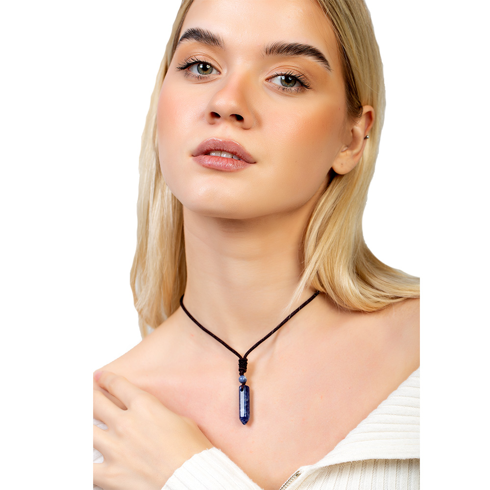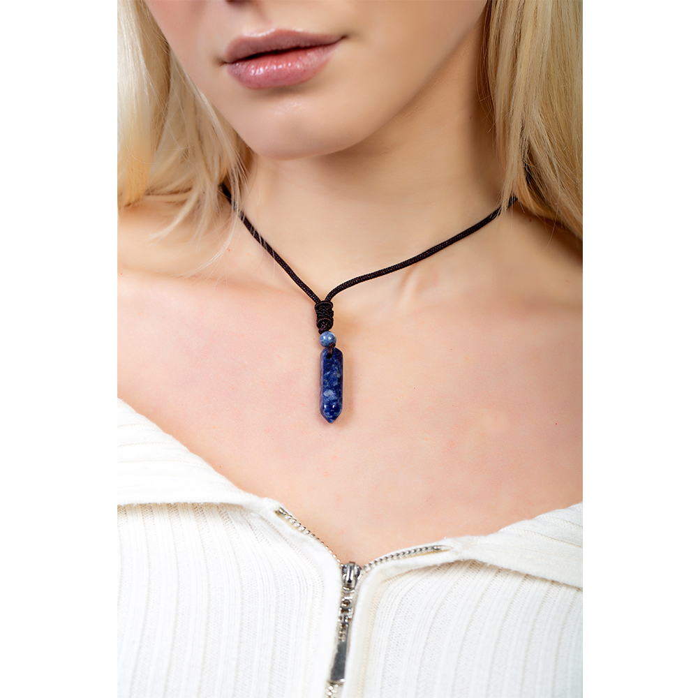 Obelisk Tasarım Zarif İp Zincirli Sodalit Doğaltaş Kadın Kolye