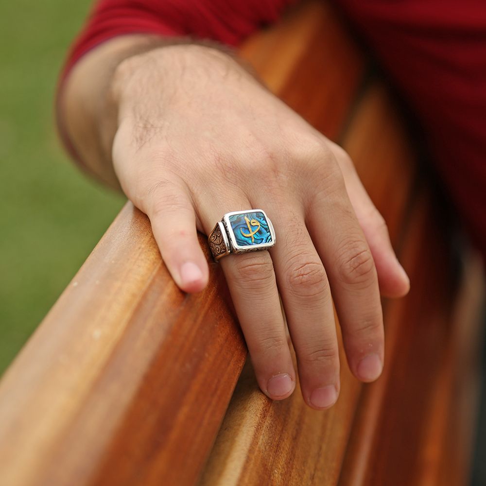 | Ürün Adı | Okyanus Sedefi Üzerine Altın Varak Elif Vav Harfli Gümüş Kare Yüzük |