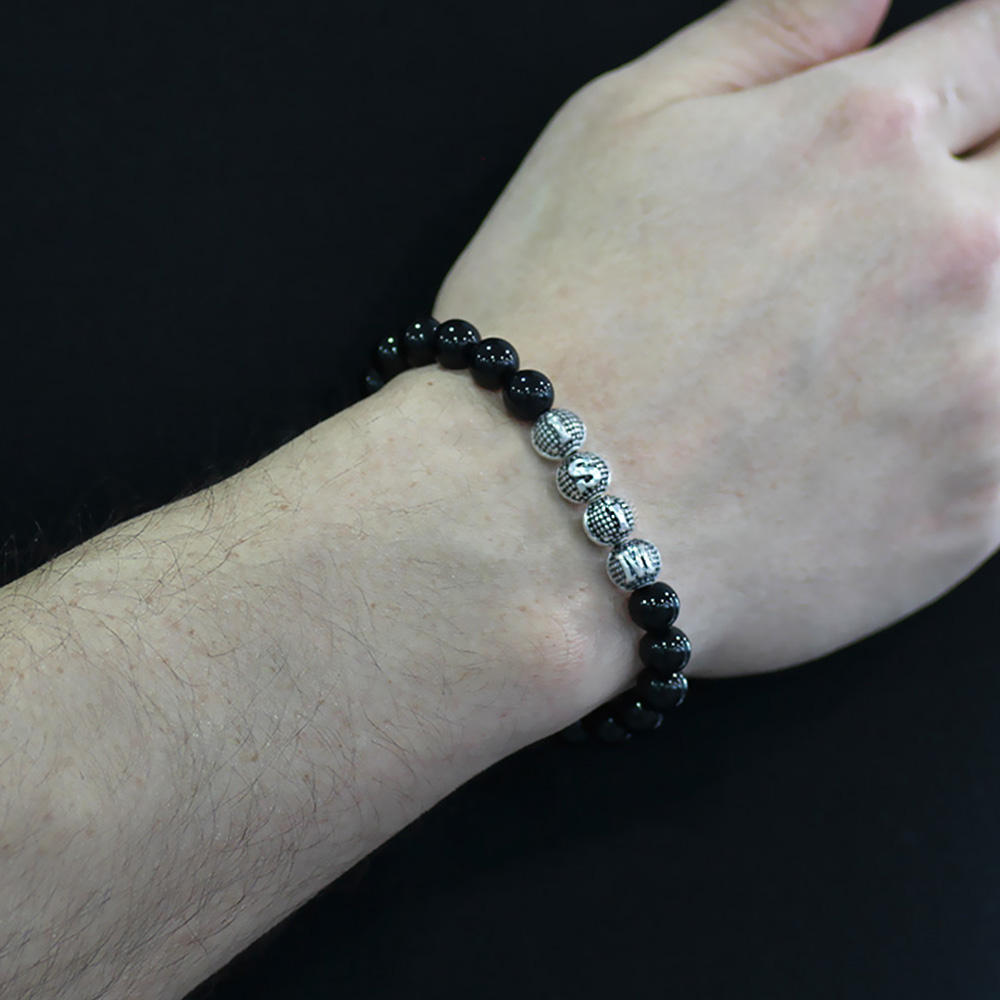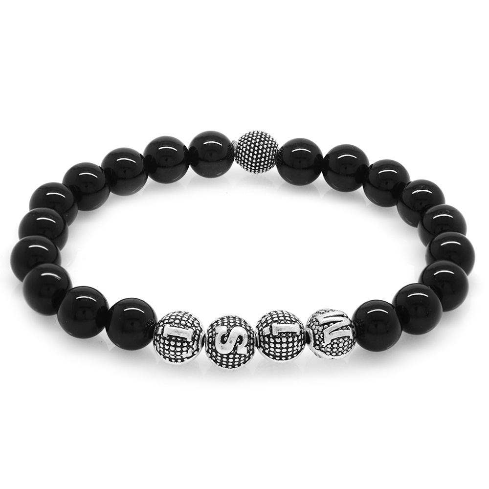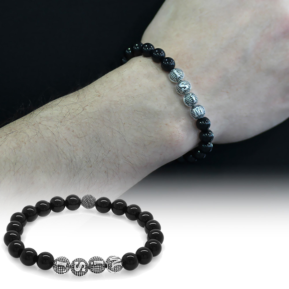Oniks Doğaltaş Bileklik - İsme Özel Yazılı - Metal Kombinli - Küre Kesim