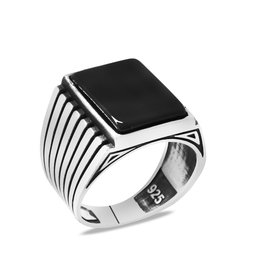 Oniks Taşlı Elegance Tasarım 925 Ayar Gümüş Erkek Yüzük