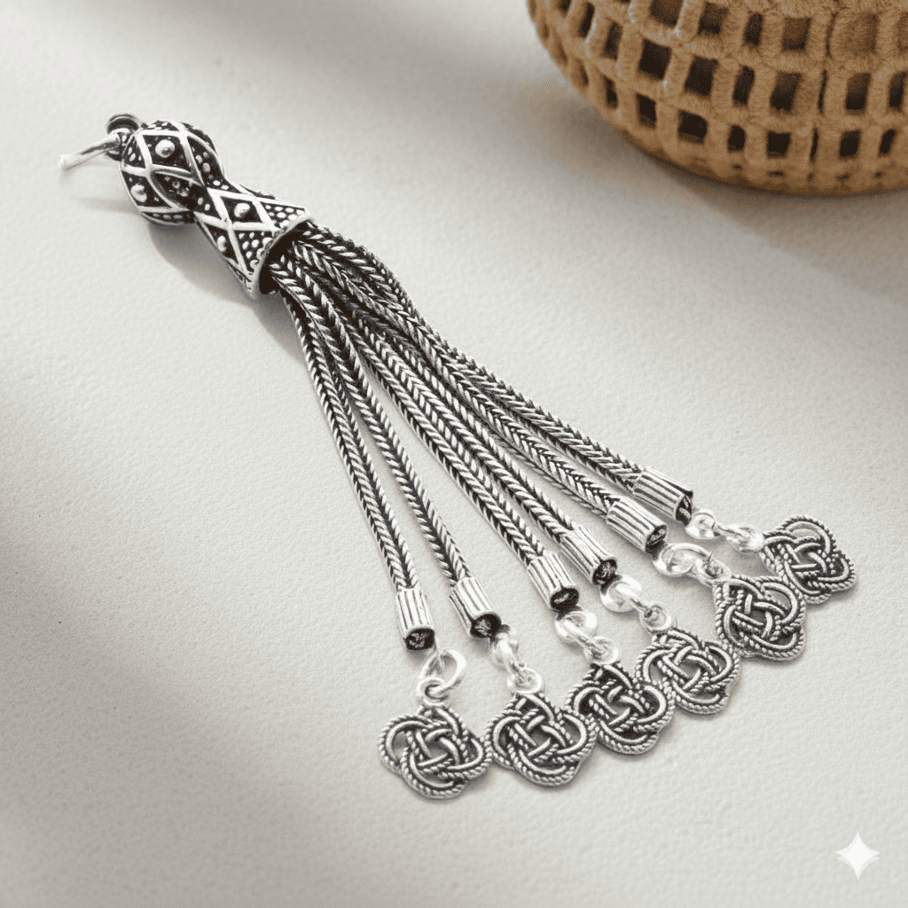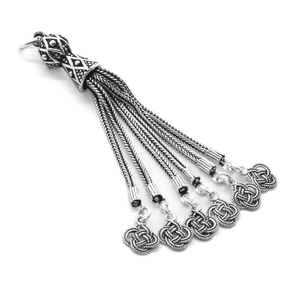 Örgü Tasarım 6 Kamçılı 925 Ayar Gümüş Püskül