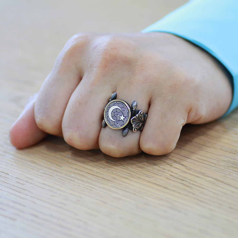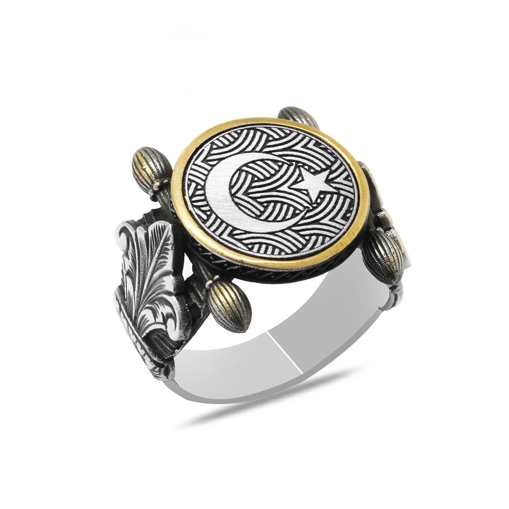 Otantik Tasarım Ayyıldız Motifli 925 Ayar Gümüş Erkek Yüzük