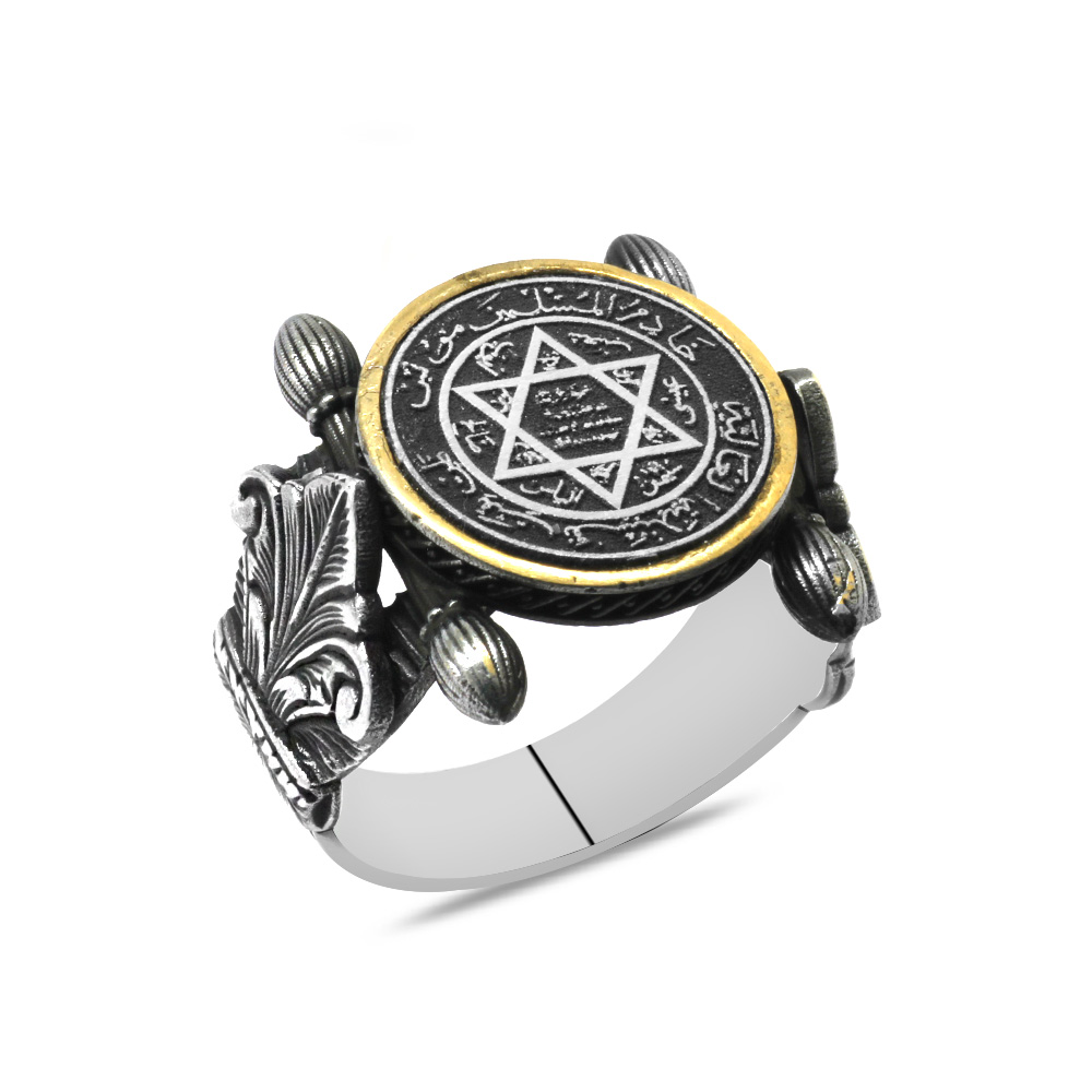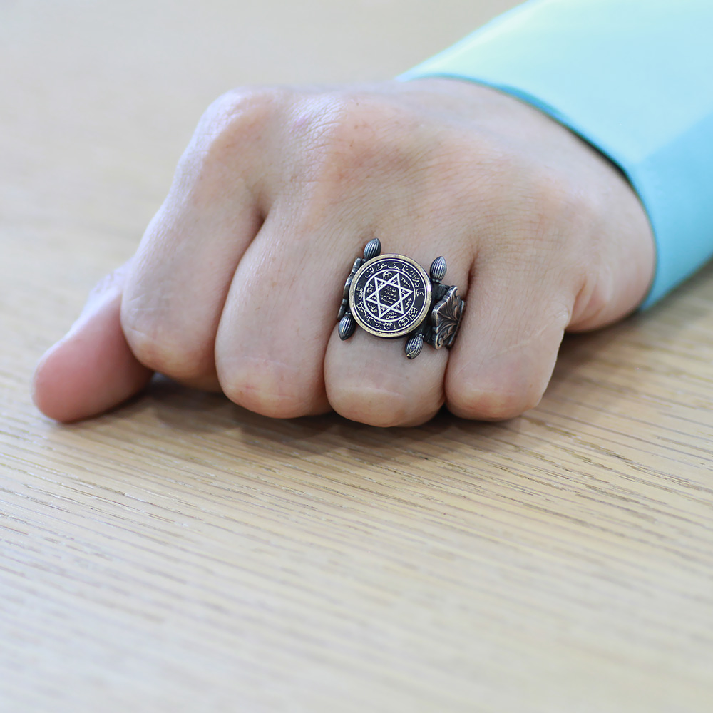 Otantik Tasarım Mührü Süleyman İşlemeli 925 Ayar Gümüş Erkek Yüzük