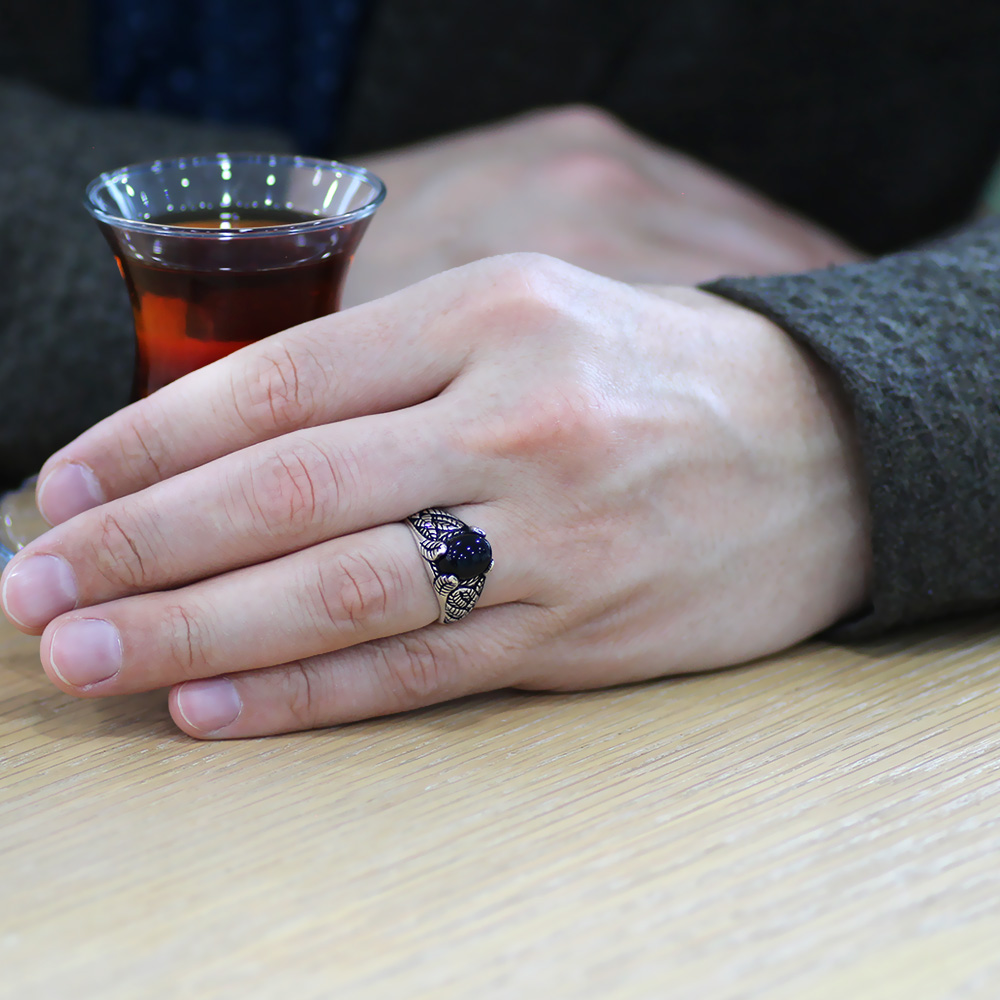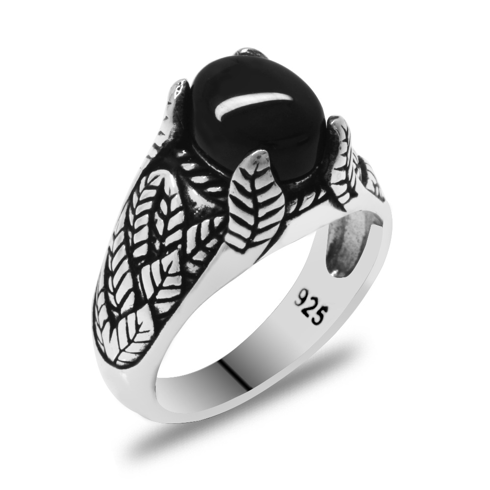 Oval Oniks Taşlı Modern Tasarım 925 Ayar Gümüş Erkek Yüzük