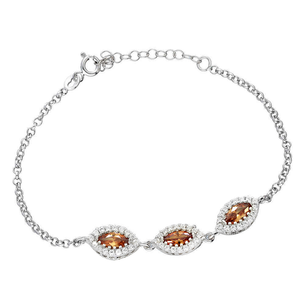Oval Tasarım Haki Zirkon Taşlı 925 Ayar Gümüş Bileklik