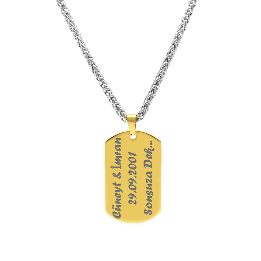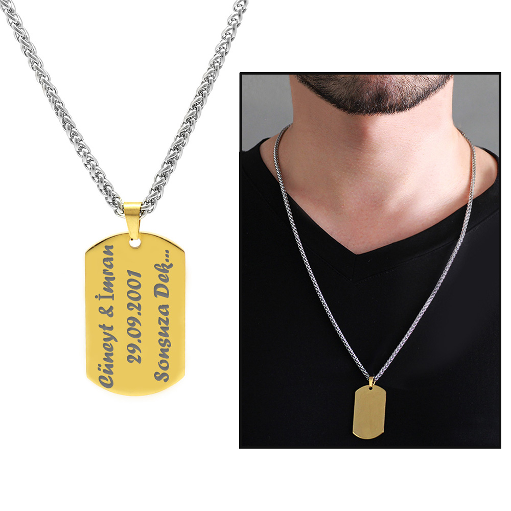 Oval Tasarım Kişiye Özel İsim Yazılı Rose Renk Çelik Erkek Kolye - 1