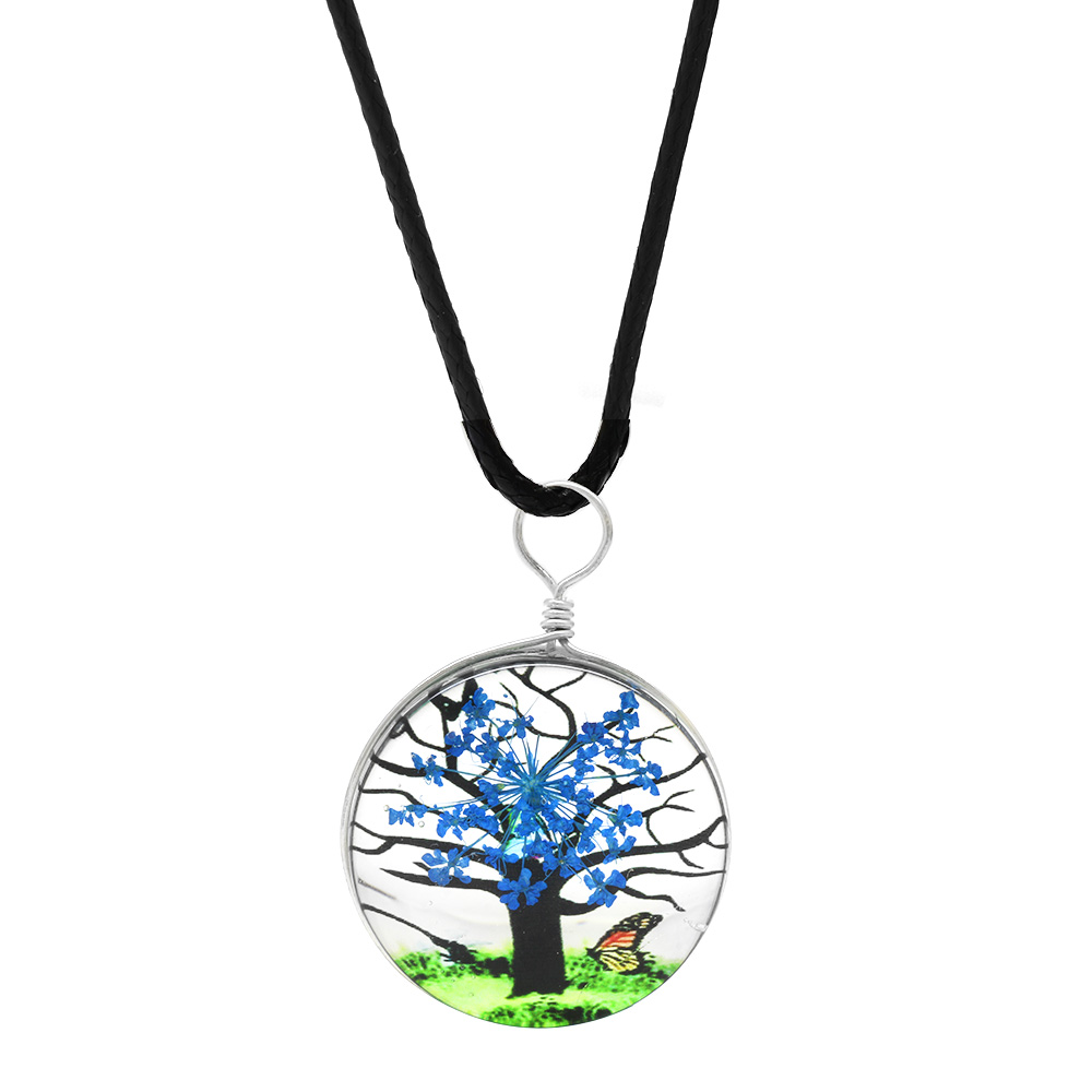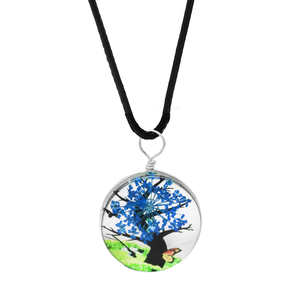 Oval Tasarım Mavi Çiçekli Doğa Temalı El Yapımı Natural Reçine Kolye