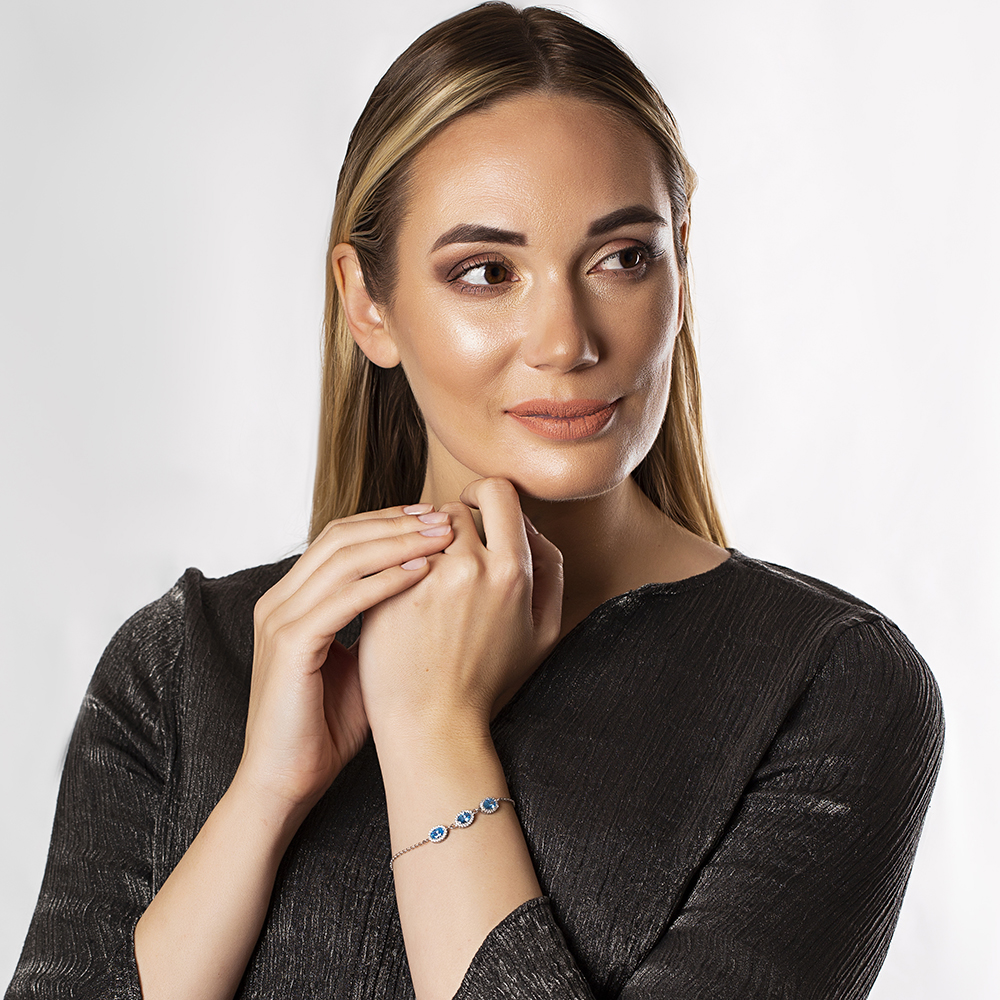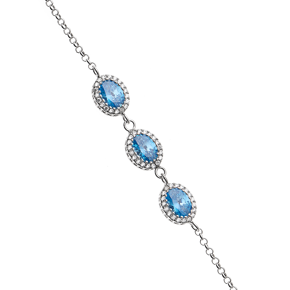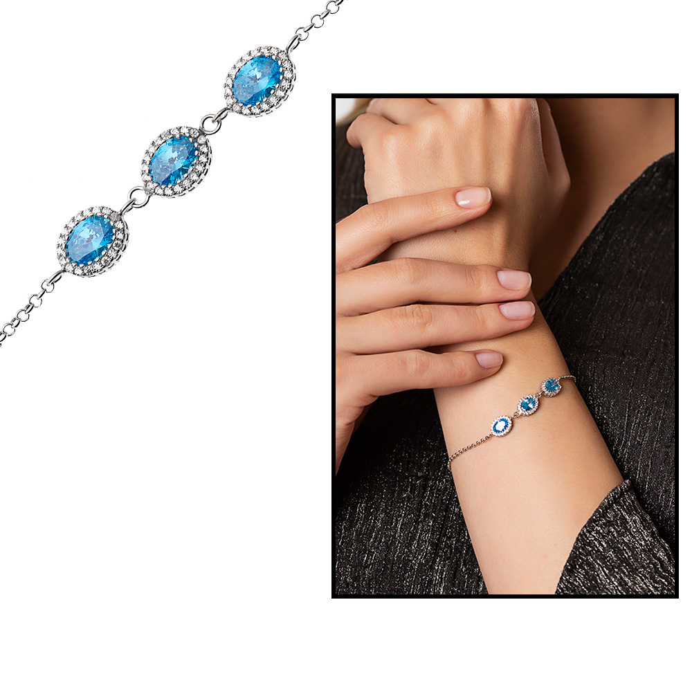 Oval Tasarım Mavi Zirkon Taşlı 925 Ayar Gümüş Bileklik - 3