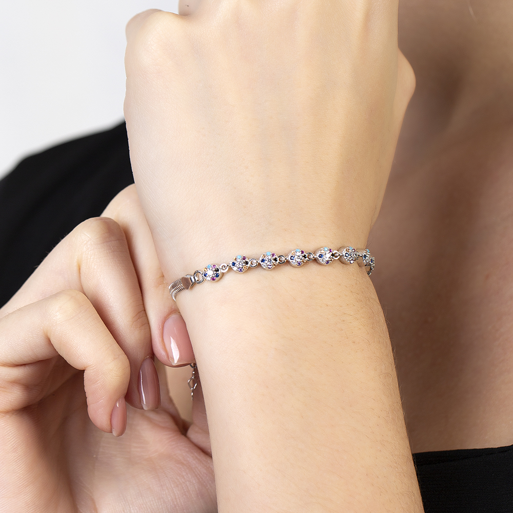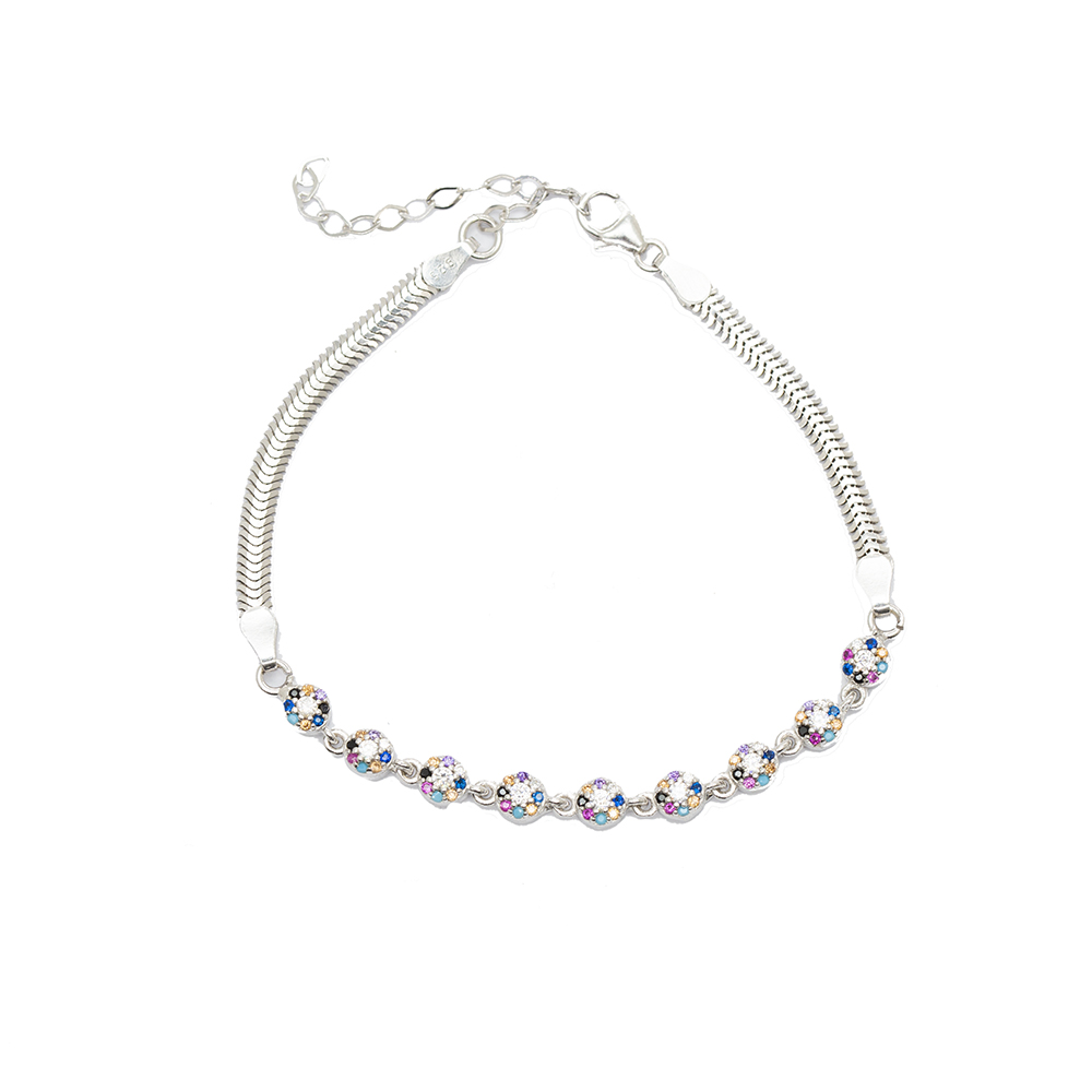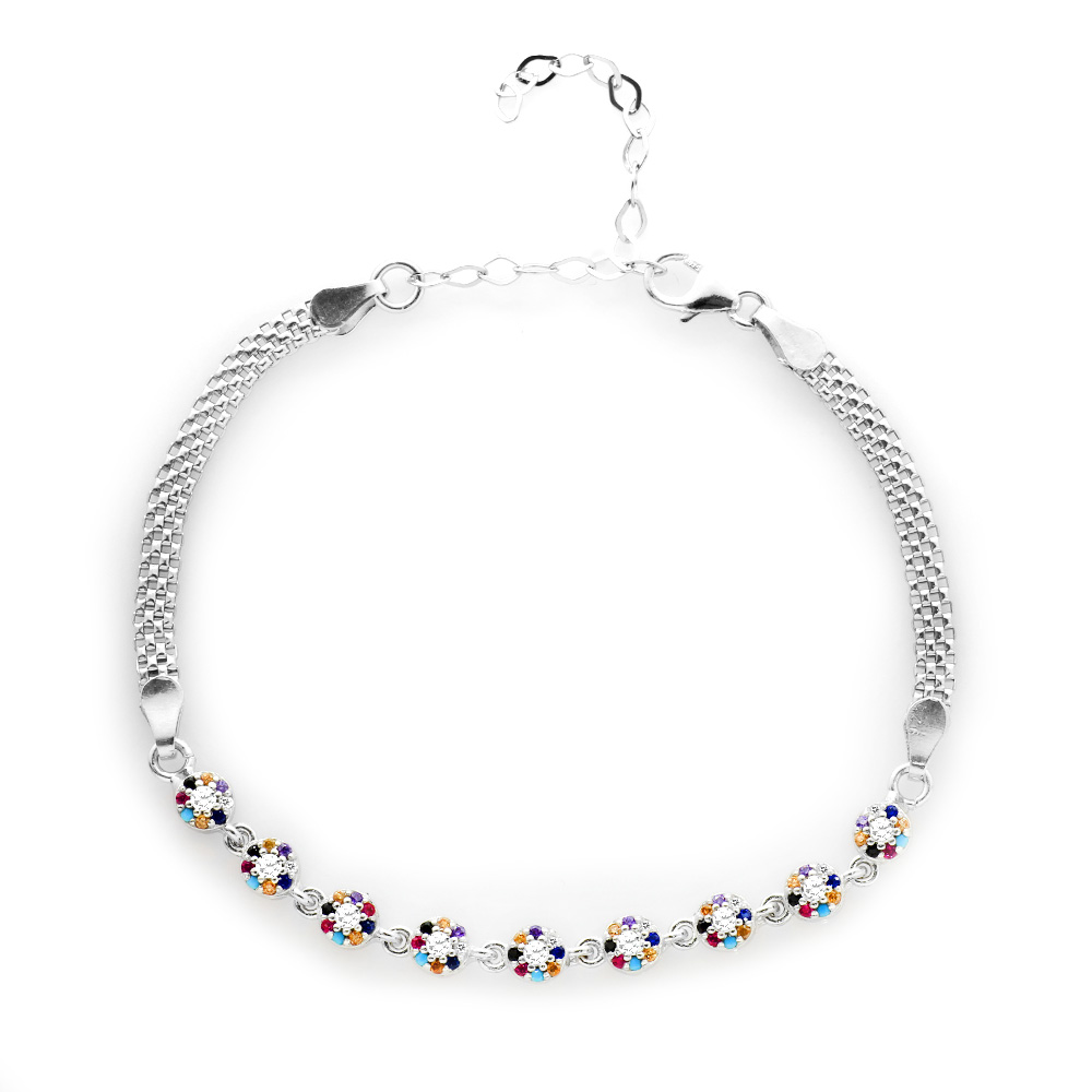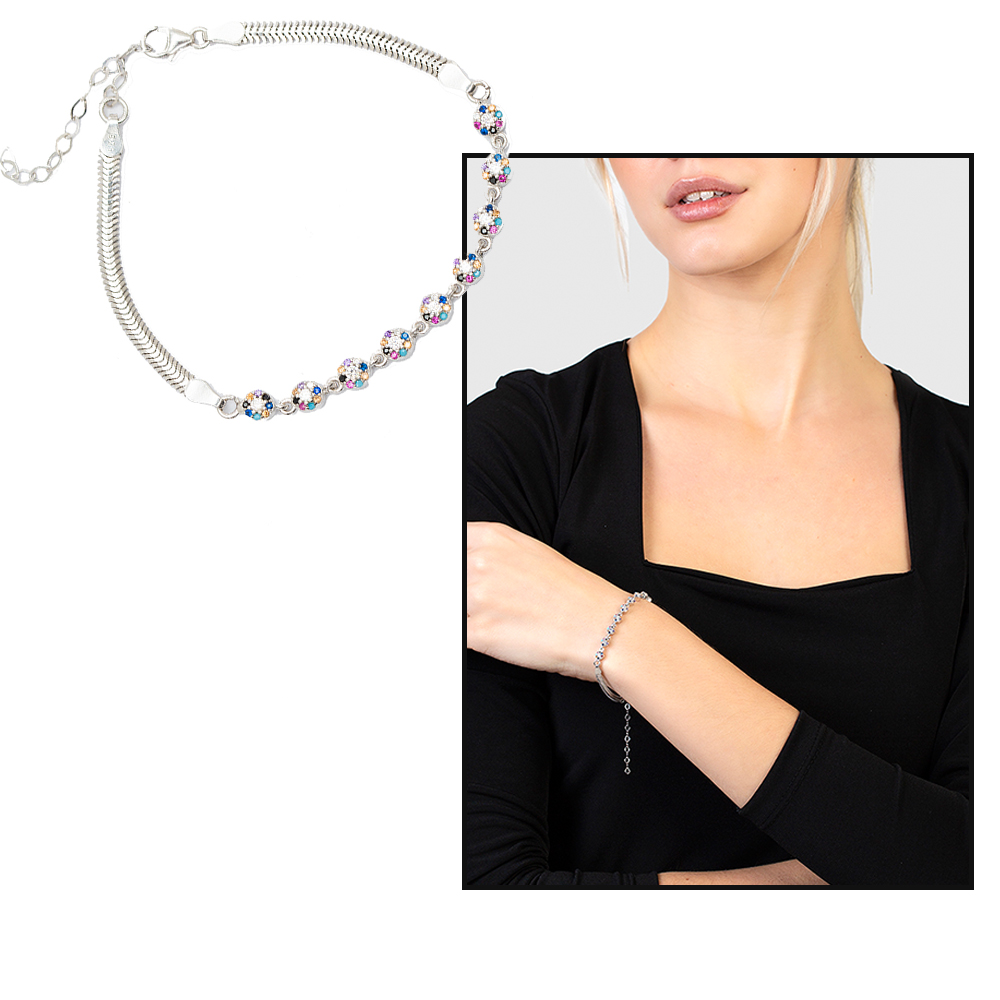 Oval Tasarım Çok Renkli Zirkon Taşlı 925 Ayar Gümüş Su Yolu Kadın Bileklik