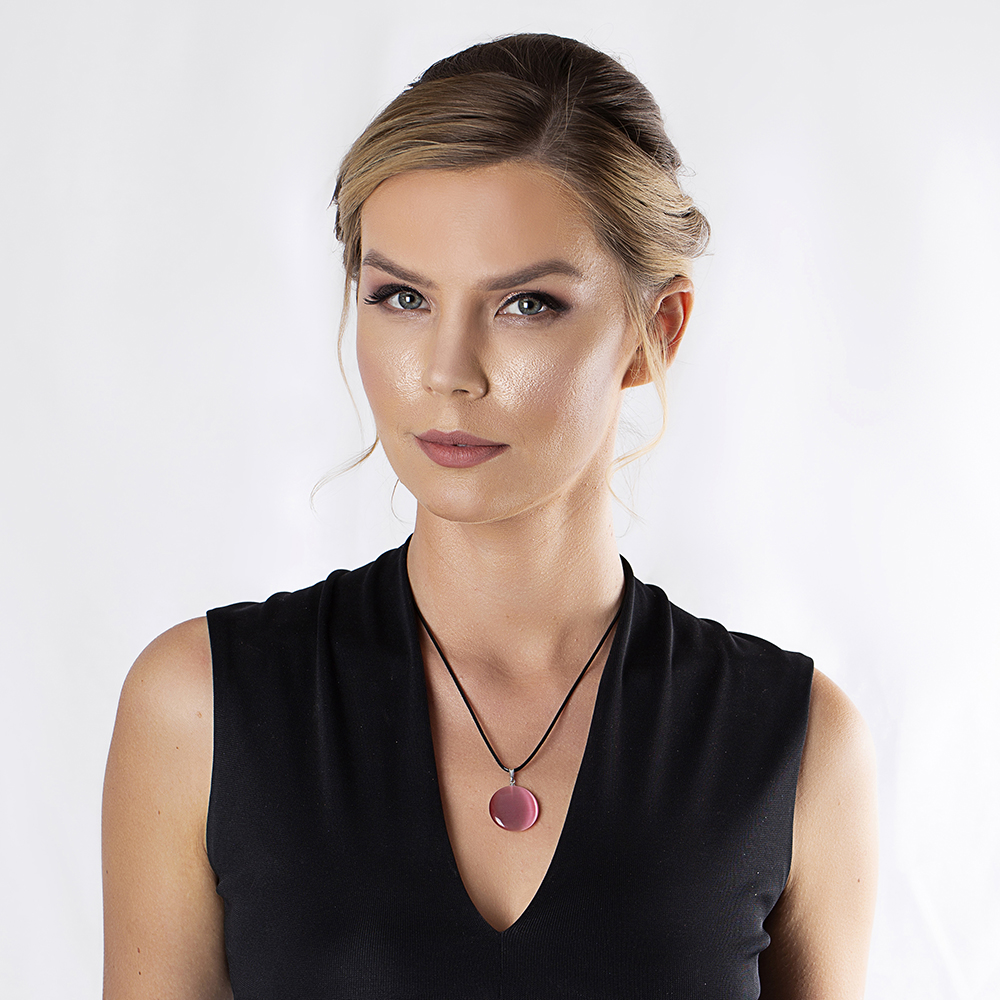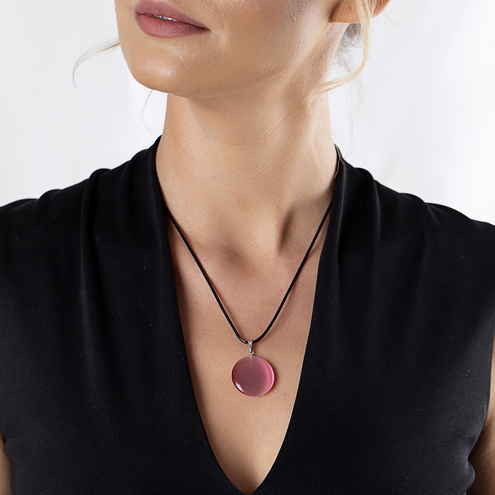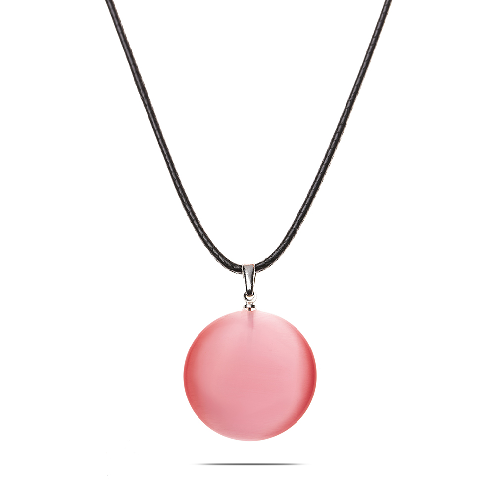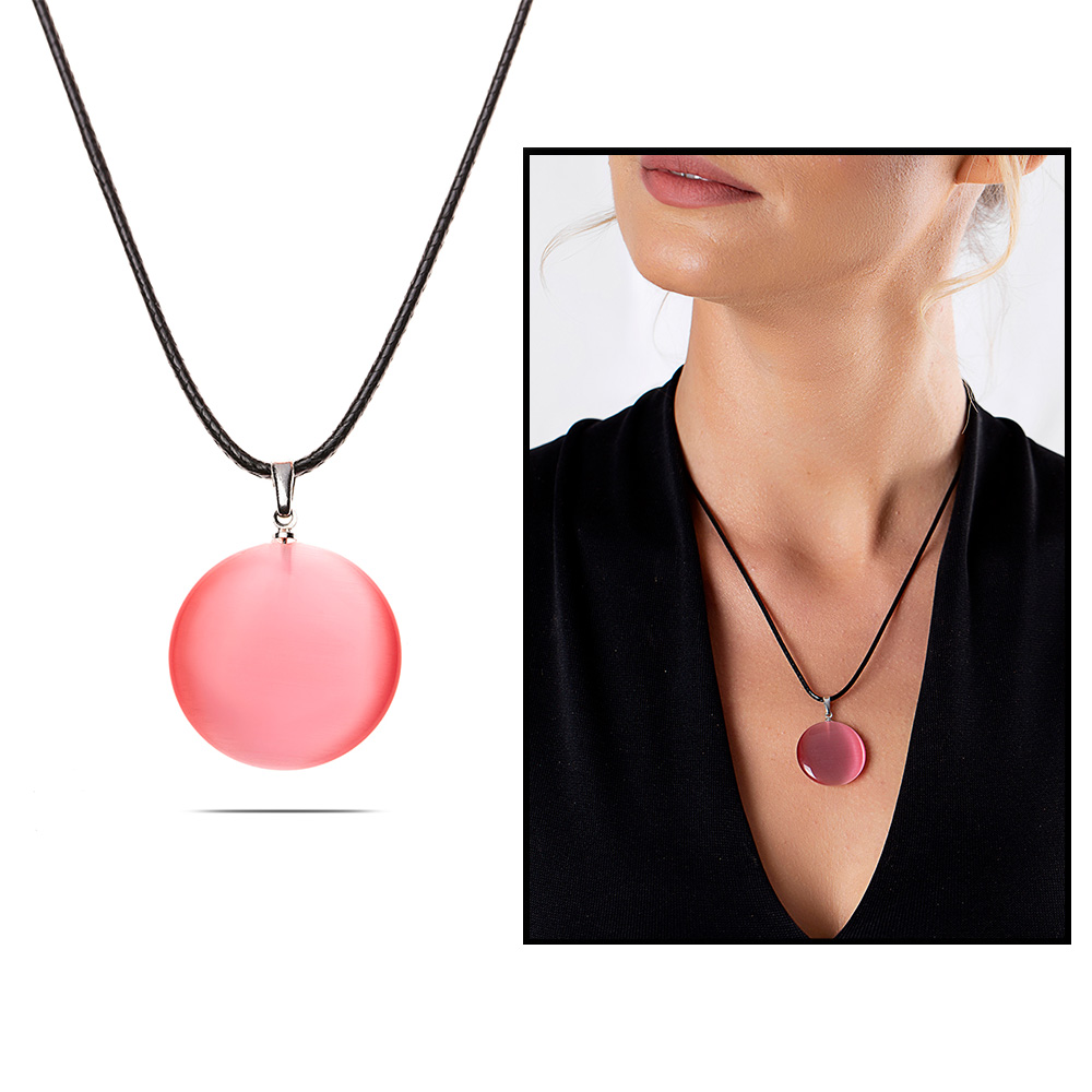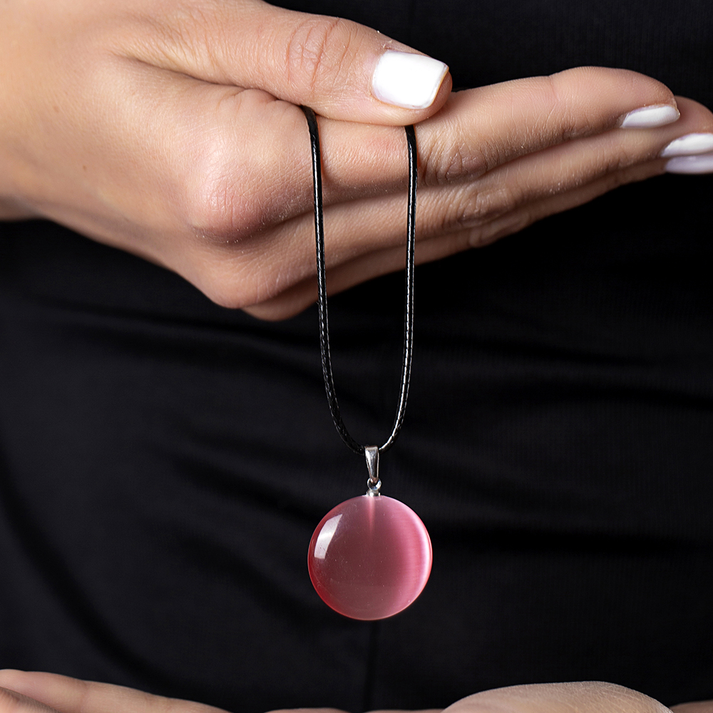 Oval Tasarım Zarif İp Zincirli Çift Taraflı Fuşya Kedigözü Kolye