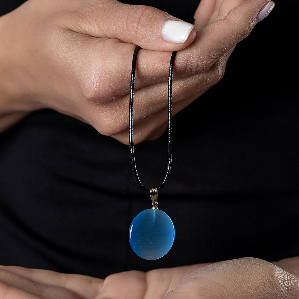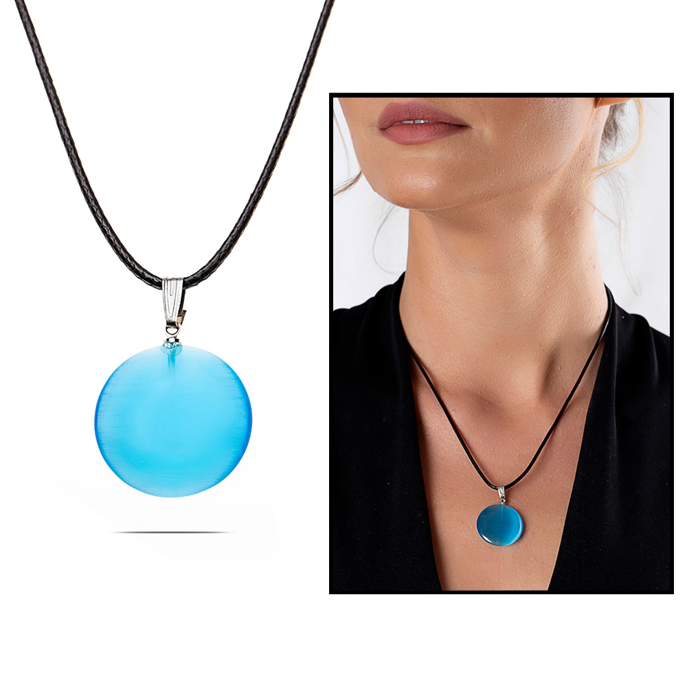 Oval Tasarım Zarif İp Zincirli Çift Taraflı Turkuaz Kedigözü Kolye