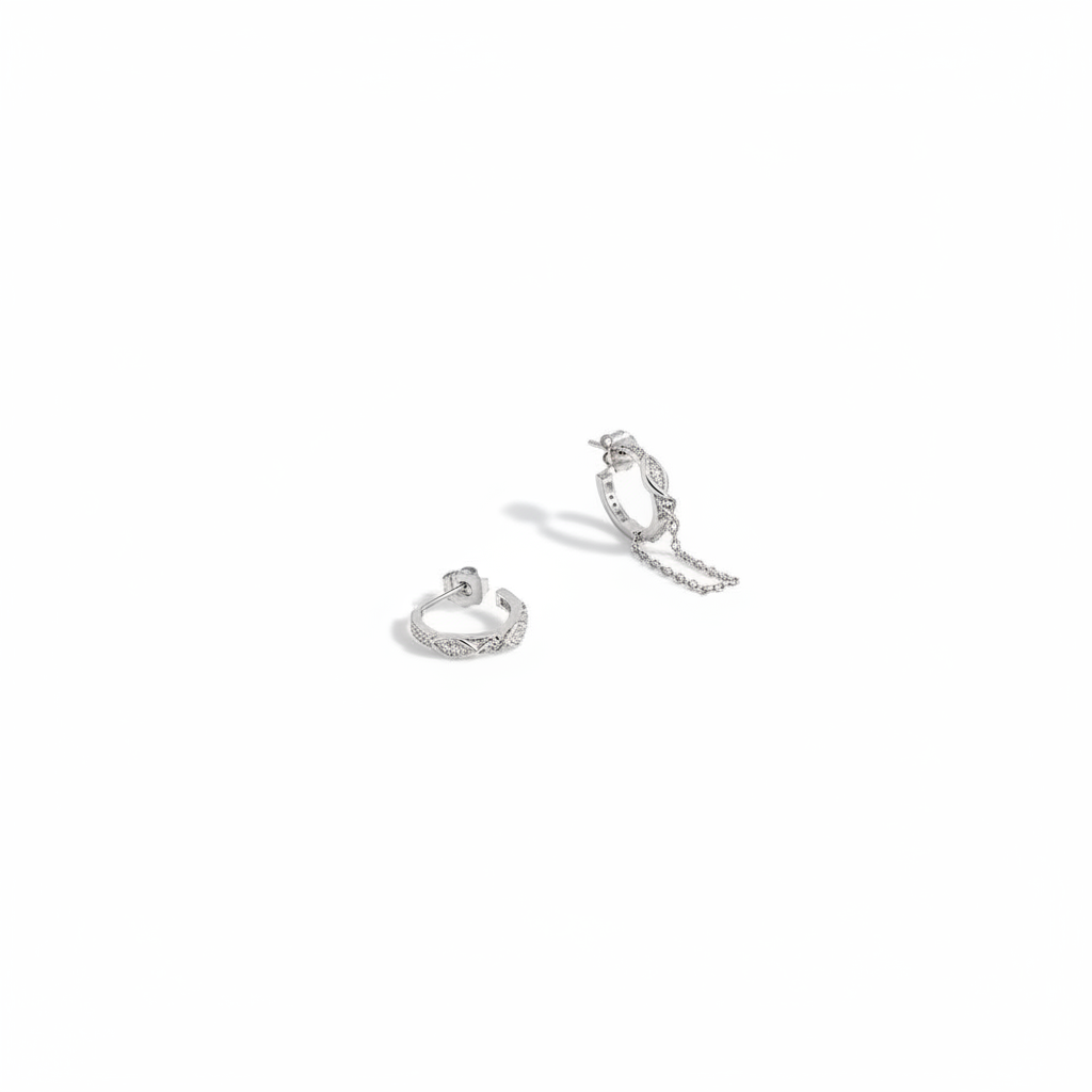 Sıralı Zirkon Taş Süslemeli Sallantılı Zincir Detaylı Gümüş Renk 925 Ayar Gümüş Kadın Küpe