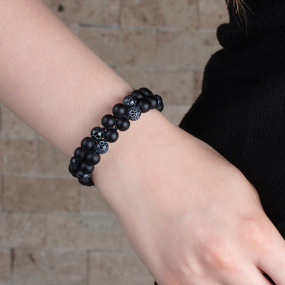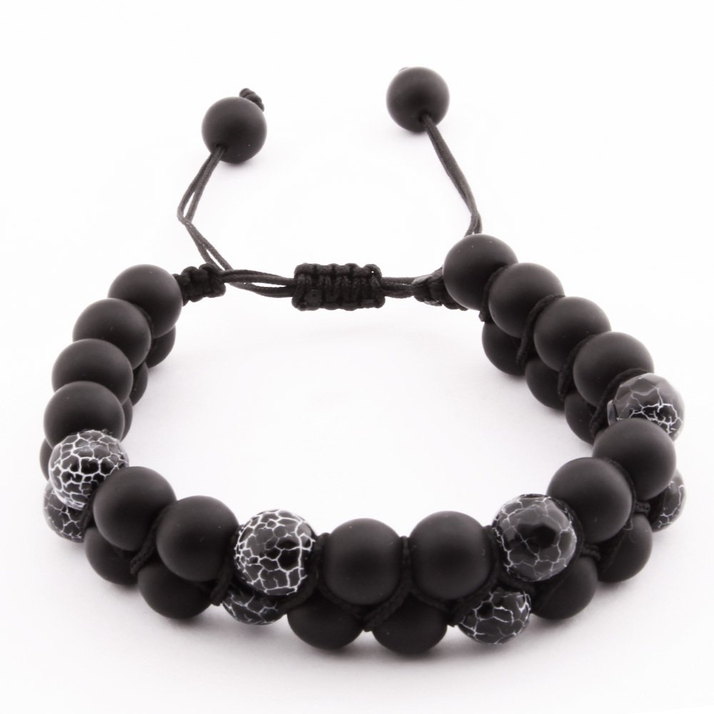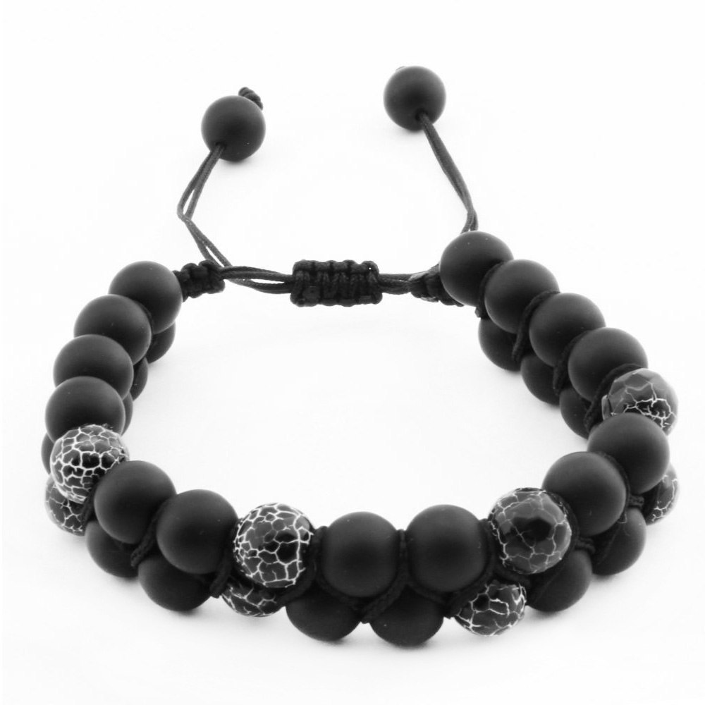 Makrome Örgü Çift Sıra Küre Kesim Akik-Oniks Doğaltaş Bayan Bileklik - 1