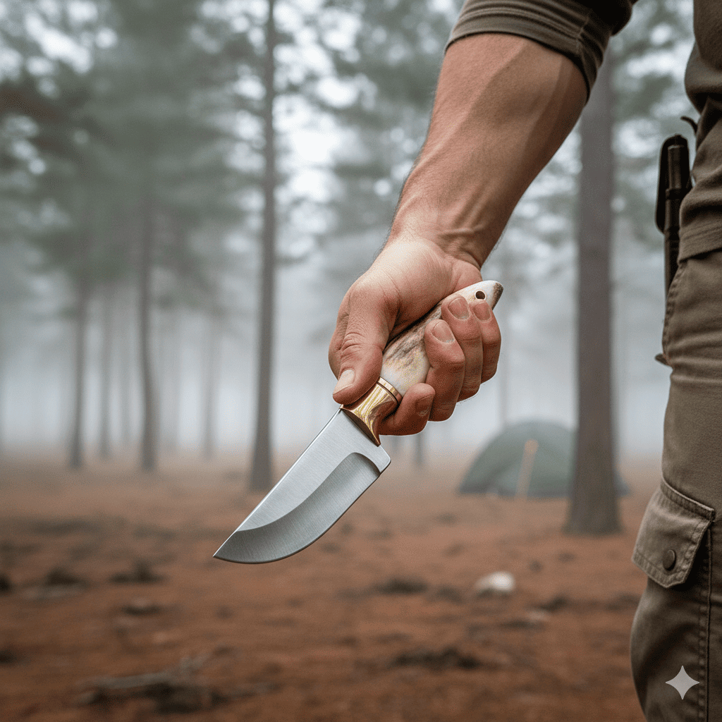 Premium Kutu Geyik Boynuzu Saplı Mini Barınlı İsme Özel 4116 Kalite Paslanmaz Çelik Avcı Kamp Bıçağı