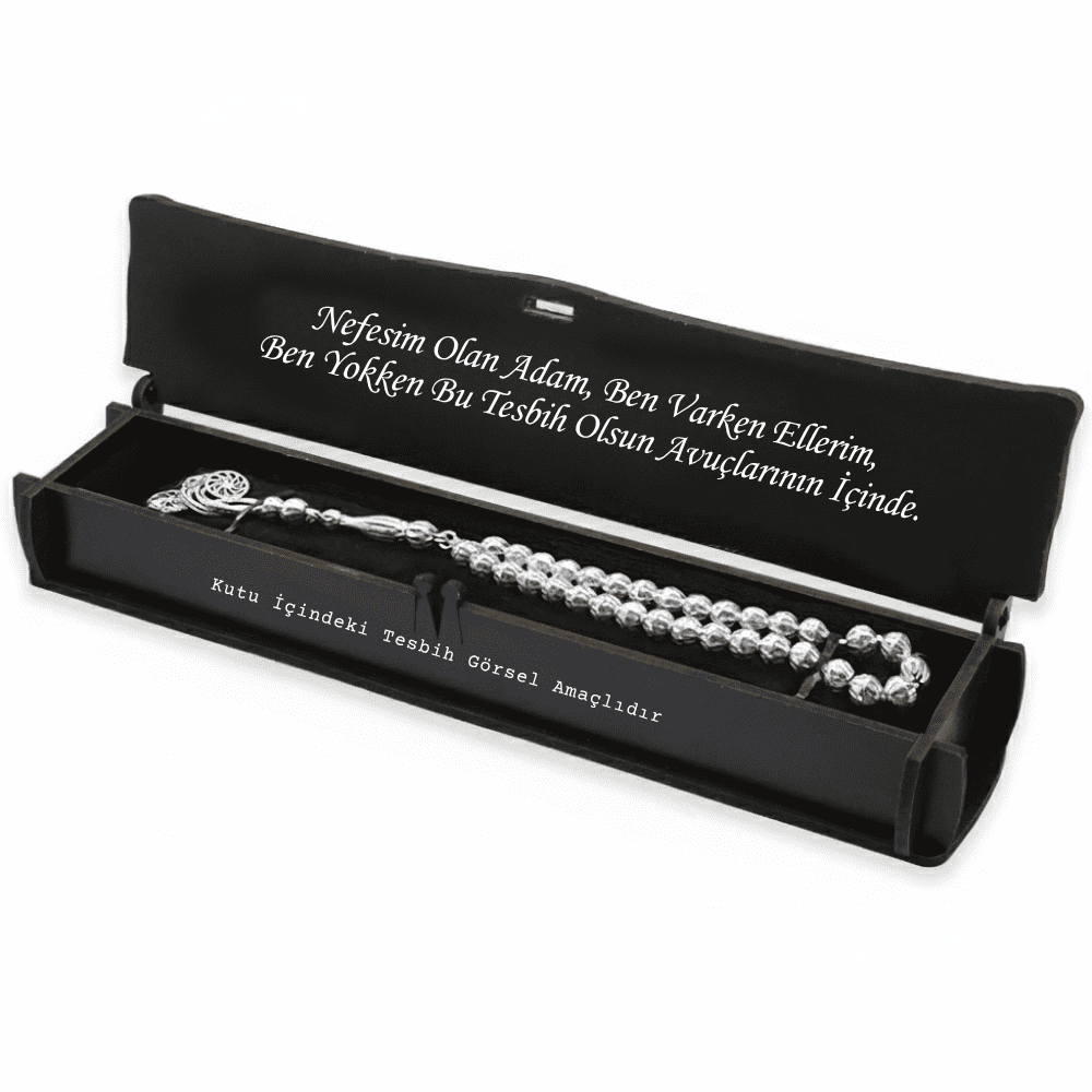 Özel Mesaj Yazılı Siyah Ahşap Elegance Hediye Tesbih Kutusu - M3