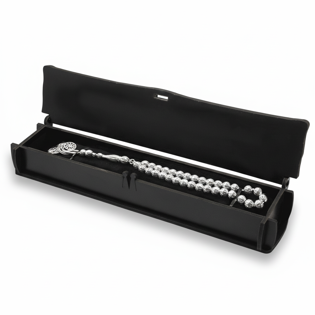 Özel Mesaj Yazılı Siyah Ahşap Elegance Hediye Tesbih Kutusu - M5