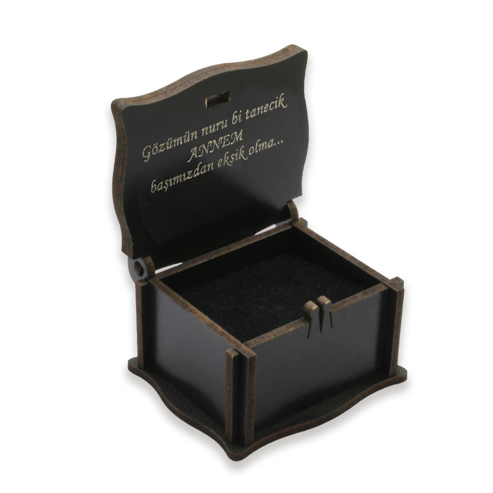 Özel Mesaj Yazılı Siyah Ahşap Hediye Yüzük Alyans Kutusu M3