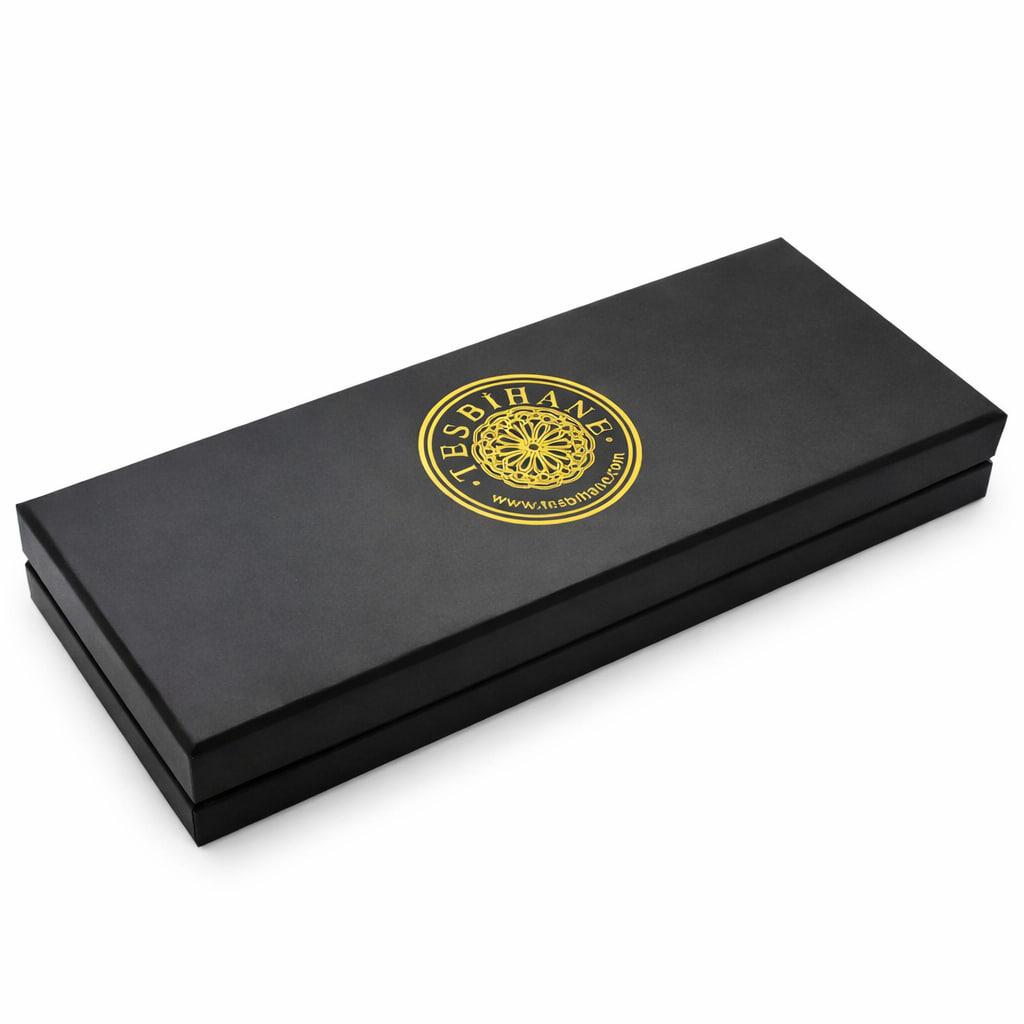 Değerli müşterimiz, sipariş ettiğiniz özel tesbihinizi, tesbihin tüm güzelliğini yansıtan özel tasarım bir kutuda size ulaştırıyoruz. Tesbihinizin şeklini tam olarak alan özel sünger kalıbıyla, kutunun içinde güvenle ve şık bir şekilde yer alıyor. Böylece tesbihiniz, size ulaşana kadar hiçbir zarar görmeden korunuyor. Dilerseniz, kutunun üzerine özel bir mesaj, tarih veya isim yazdırarak, tesbihinizi daha da anlamlı hale getirebilirsiniz. Bu sayede, tesbihiniz sadece bir aksesuar olmaktan çıkarak, size özel bir hatıra haline gelir. Tesbihinizin hem estetik hem de güvenli bir şekilde size ulaşması için özenle hazırladığımız bu özel kutuyu beğeneceğinizi umuyoruz.