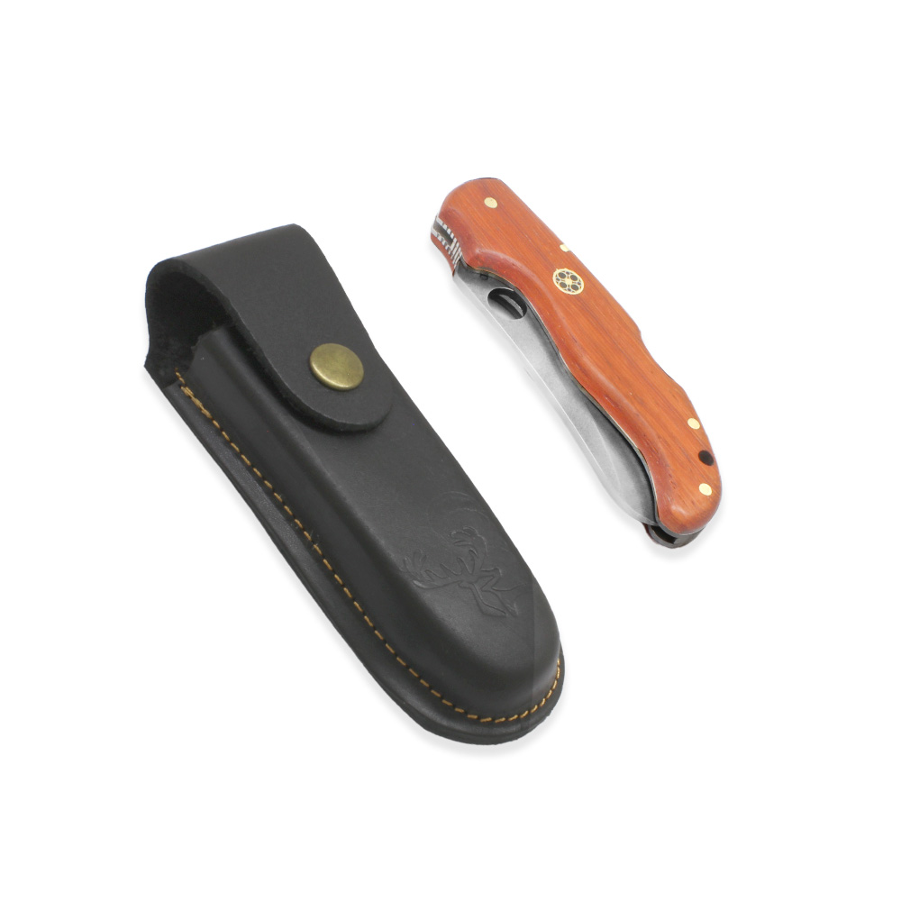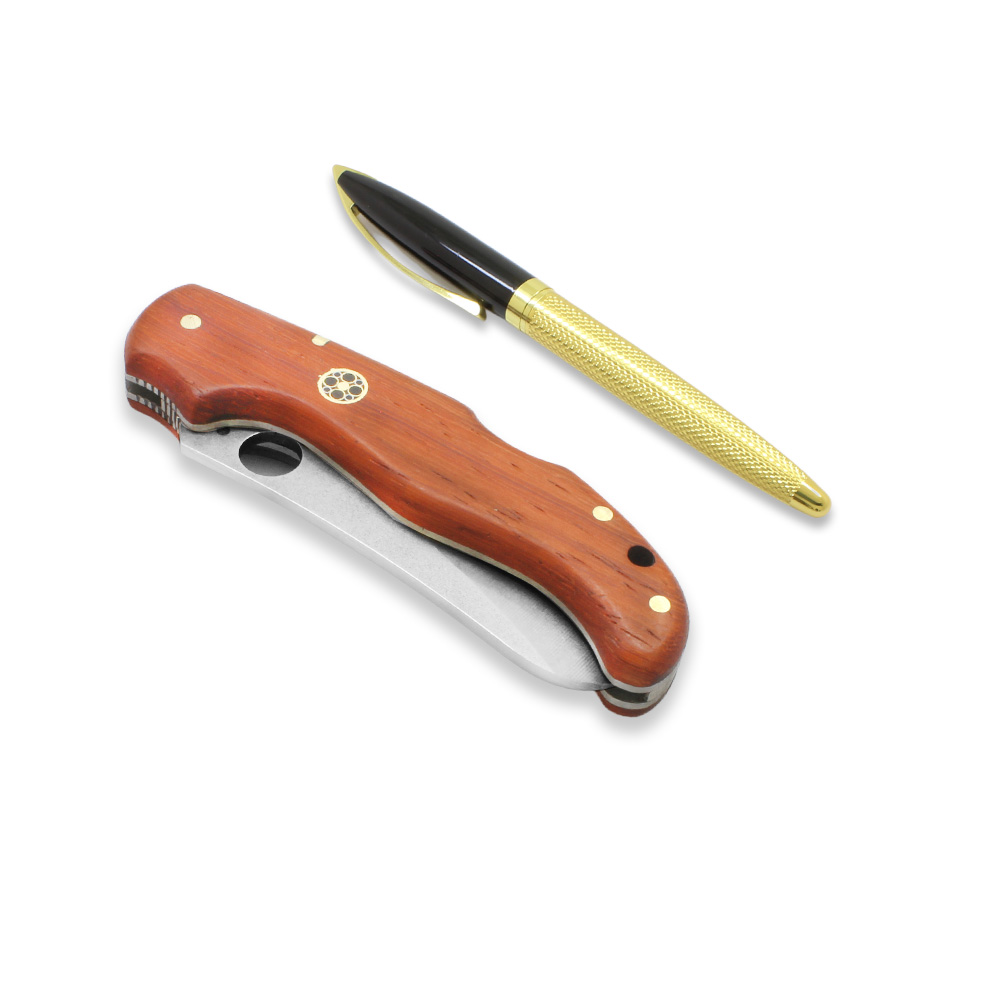 Padok Ağacı Saplı Delikli Hayta Kilit Mekanizmalı İsme Özel 4116 Karartılmış Çelik Avcı Kamp Bıçağı - 4