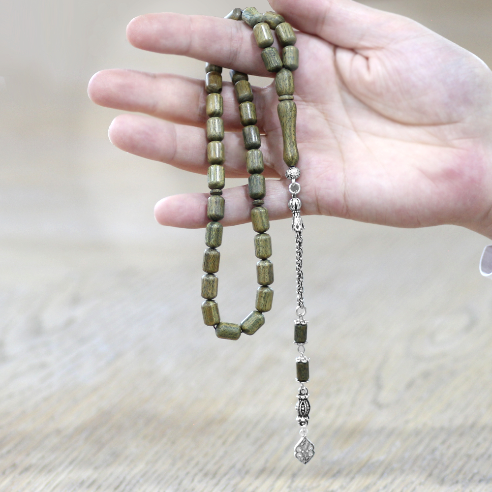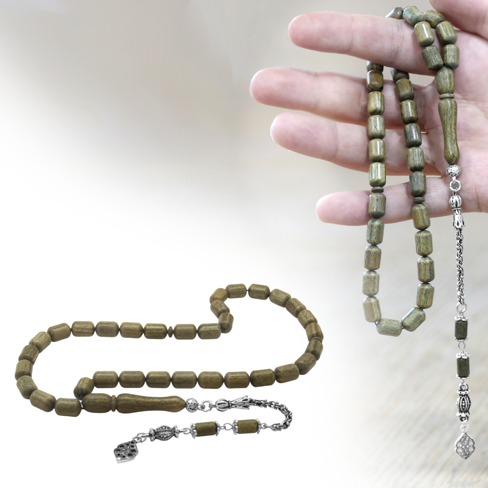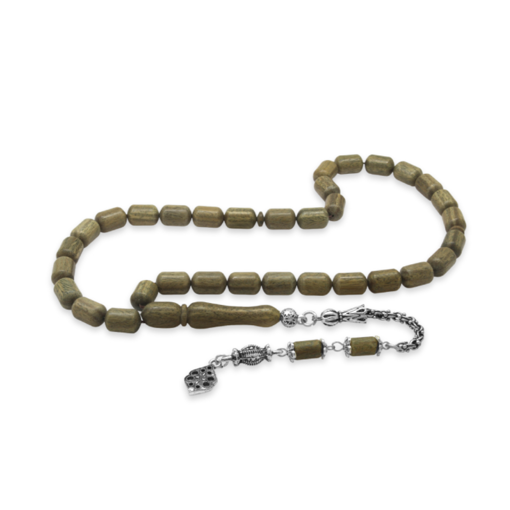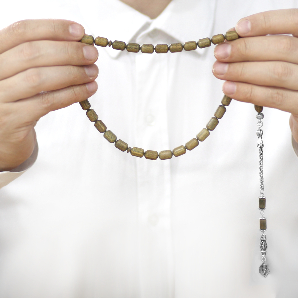 Pelesenk Ağacı Tesbih - Kararmaz Metal Arnavut Zincir Püsküllü - Kahverengi - Kapsül Kesim