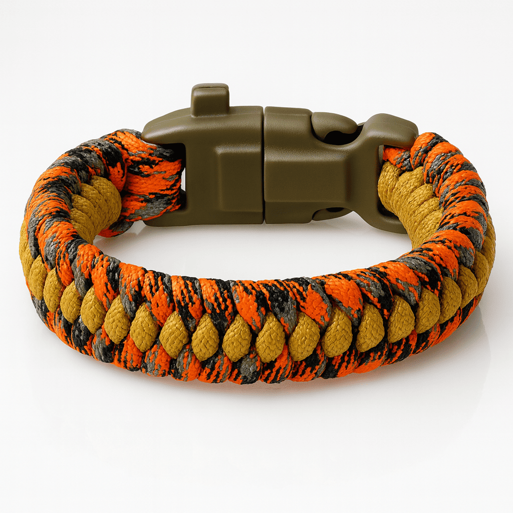 Pusulalı Çakmaklı Paracord Bileklik Anahtarlık - Turuncu Kamuflaj Desen - Kamp ve Doğa Sporları İçin