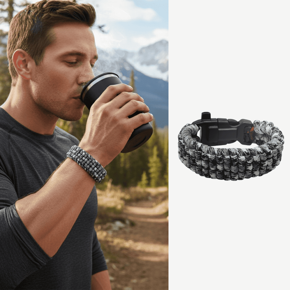 Zorlu doğa koşullarına meydan okumak isteyenler için tasarlanan paracord bileklik, dayanıklı yapısı ve çok yönlü fonksiyonlarıyla öne çıkar. Entegre pusula yön bulmayı kolaylaştırırken, çakmak (ateş başlatıcı) özelliği kamp, doğa yürüyüşü, avcılık ve dağcılık gibi outdoor aktivitelerde güvenli bir yardımcı sunar. Ayrıca entegre düdük özelliği sayesinde acil durumlarda yardım çağrısı yapmayı mümkün kılar.Taktik paracord halat örgüsü, gerektiğinde çözülerek ip olarak kullanılabilir ve hayatta kalma senaryolarında kritik bir ekipmana dönüşür. Şık ve ergonomik tasarımı sayesinde bileğe rahatça oturur, hafif yapısıyla uzun süreli kullanımlarda konfor sağlar.Asker kamuflaj, orman, deniz, şehir, gece, alev, avcı, gri, bordo-yeşil ve mor gibi farklı desen seçenekleriyle hem işlevselliği hem de tarzı bir araya getirir. Hem erkek hem kadın kullanıcılar için uygun olan bu bileklik, kamp ekipmanı, doğa sporu aksesuarı ve hayatta kalma bilekliği arayanlar için mükemmel bir seçimdir.