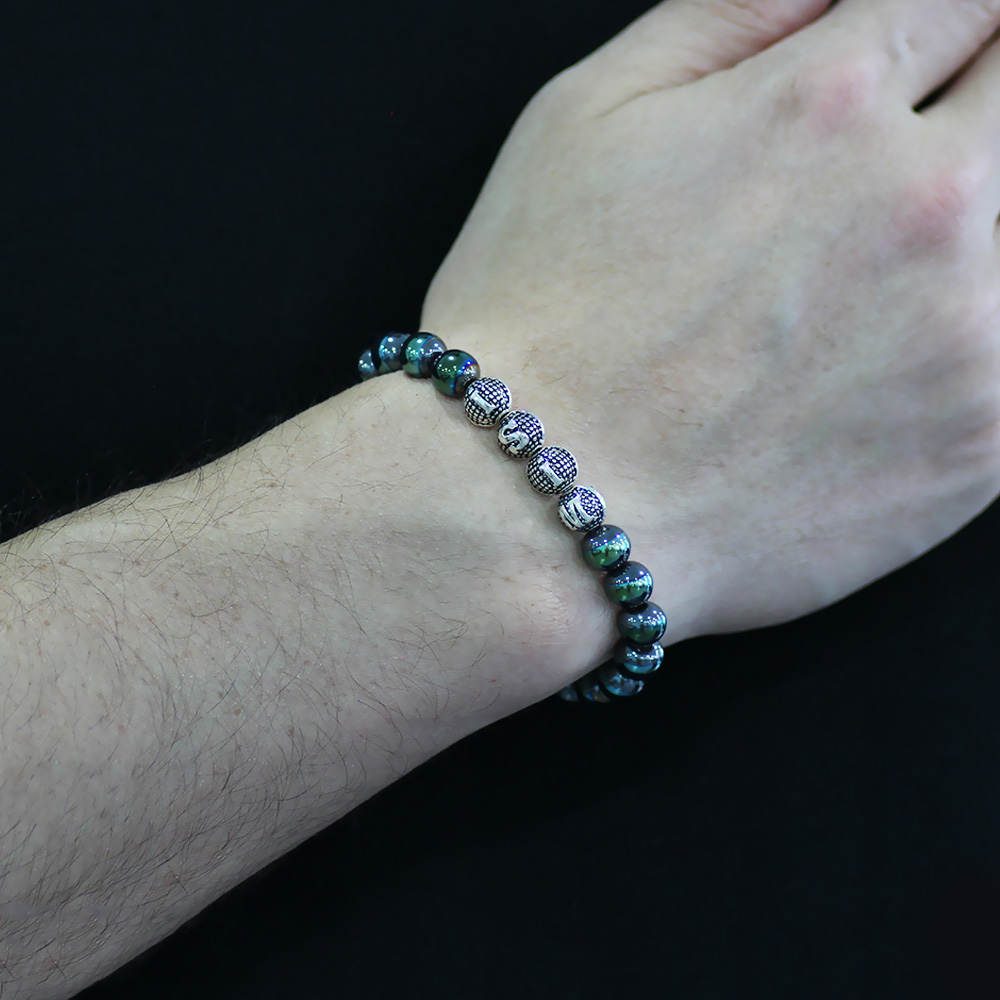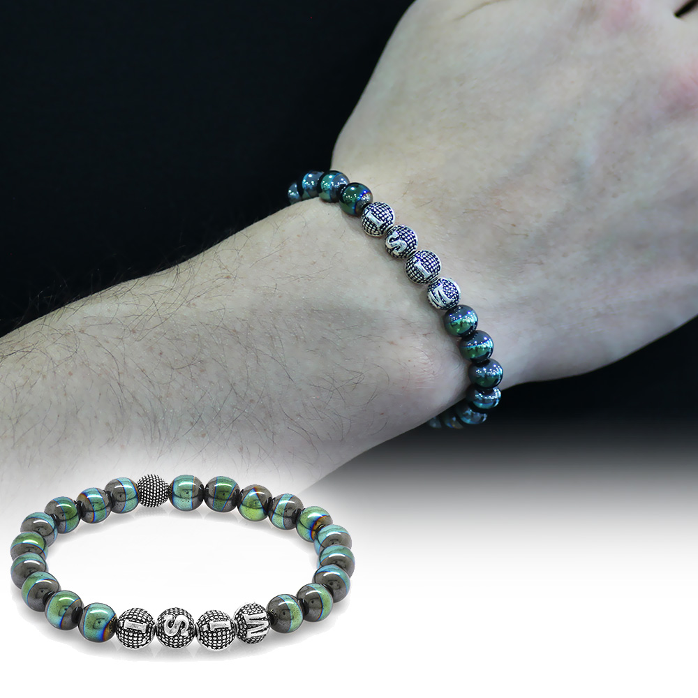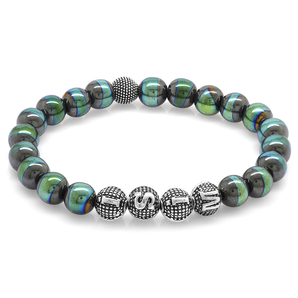 Renkli Hematit Metal Kombinli Kişiye Özel İsim Yazılı Küre Kesim Doğaltaş Bileklik - 1