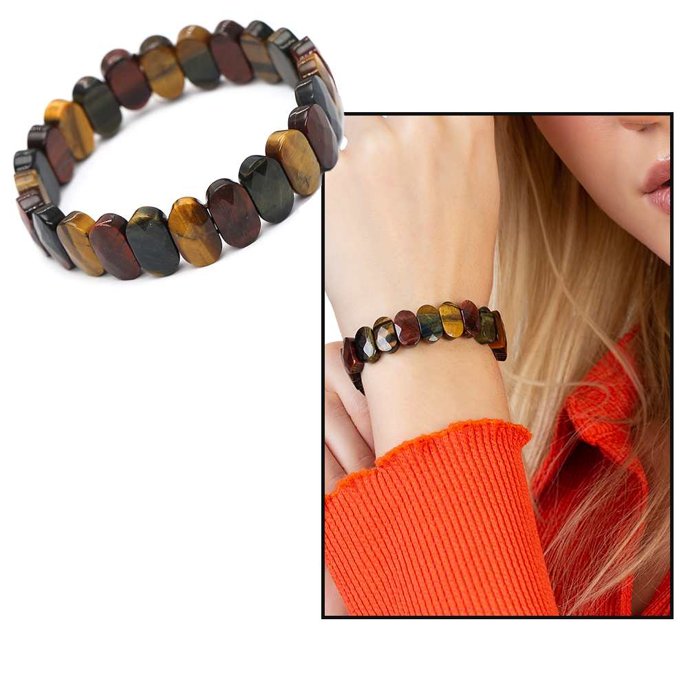 Renkli Kaplan Gözü Doğaltaş Rolex Kadın Bileklik