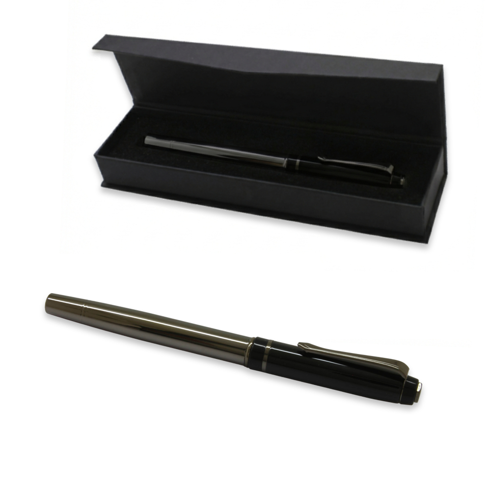 Roller Tükenmez Kalem - Şık Kutulu - Füme Siyah Renk - İsme Özel Yazılı - Mavi Mürekkep