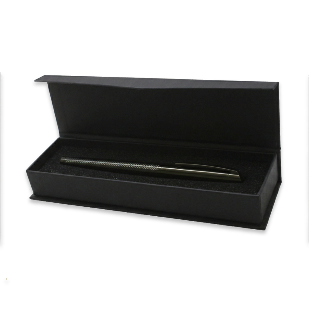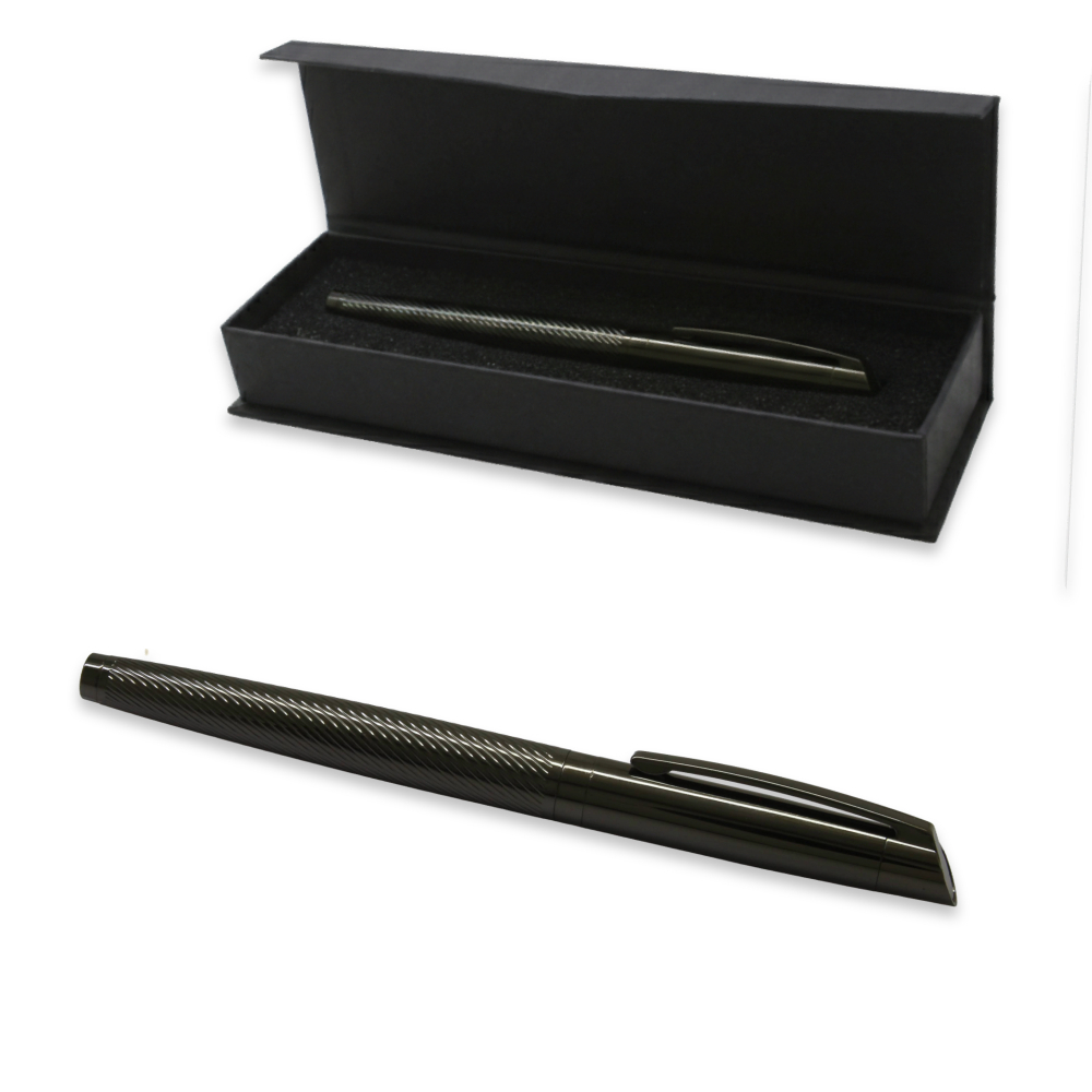 Roller Tükenmez Kalem - Şık Kutulu - İsme Özel Yazılı - Füme Renk - Mavi Mürekkep