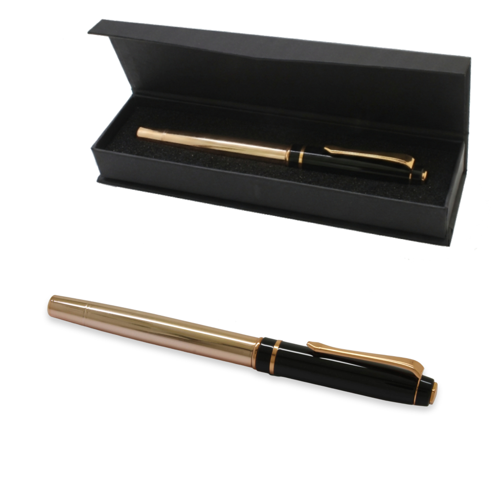 Roller Tükenmez Kalem - Şık Kutulu - Rose Siyah Renk - İsme Özel Yazılı - Mavi Mürekkep