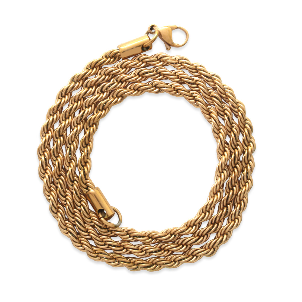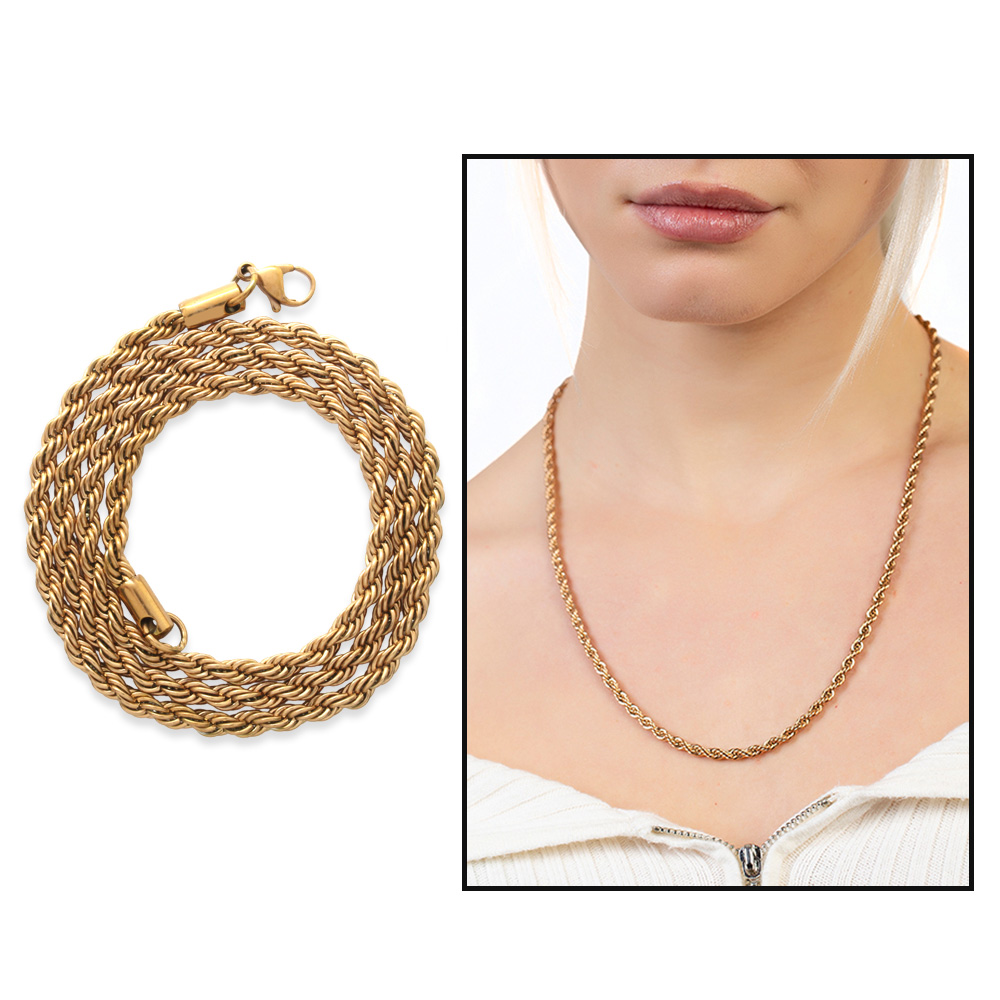 Kadın Çelik Zincir - Burma Model - Altın Renk - 55 cm Uzunluk - 5,0 mm Genişlik