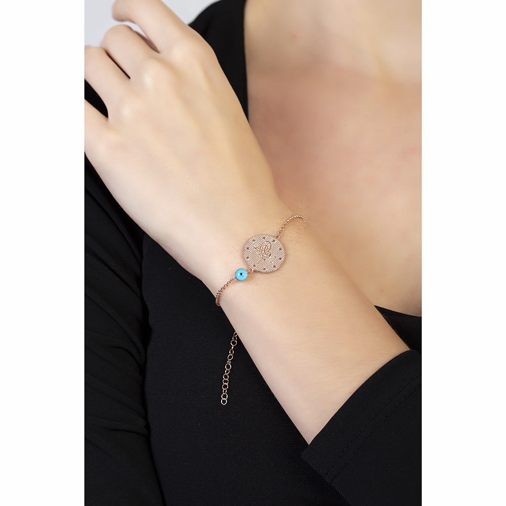 Rose Renk Mecidiye Tasarım Nazar Boncuğu Detaylı 925 Ayar Gümüş Kadın Bileklik