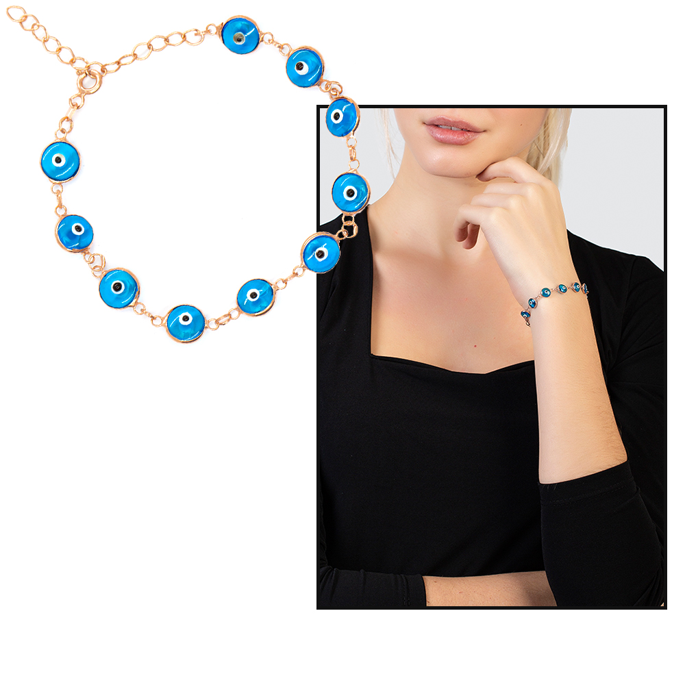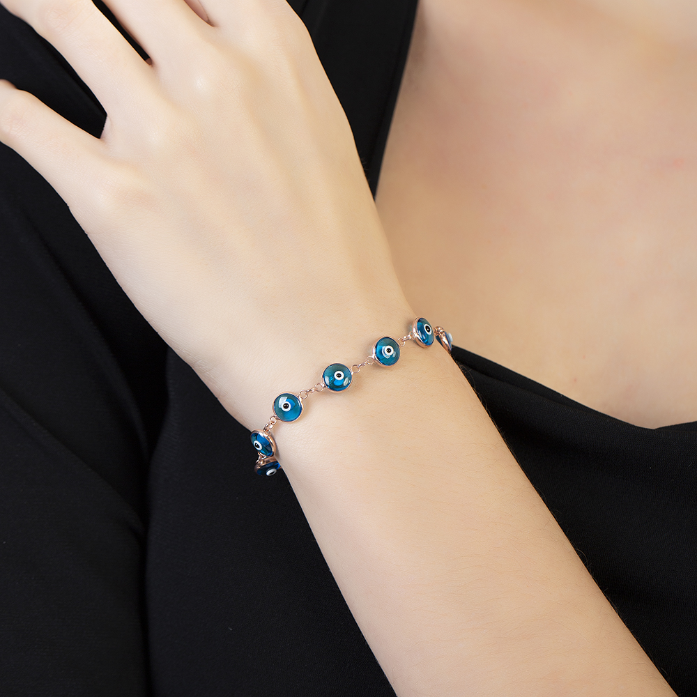 Rose Renk Nazar Boncuğu Detaylı 925 Ayar Gümüş Kadın Bileklik
